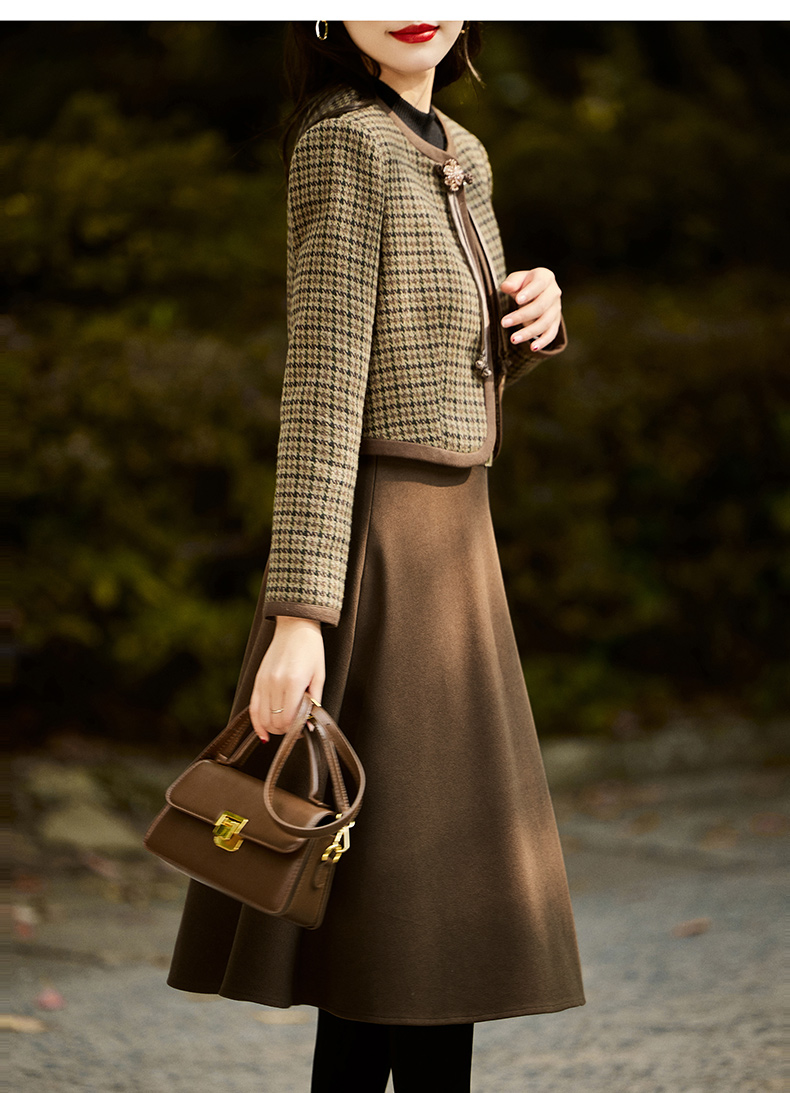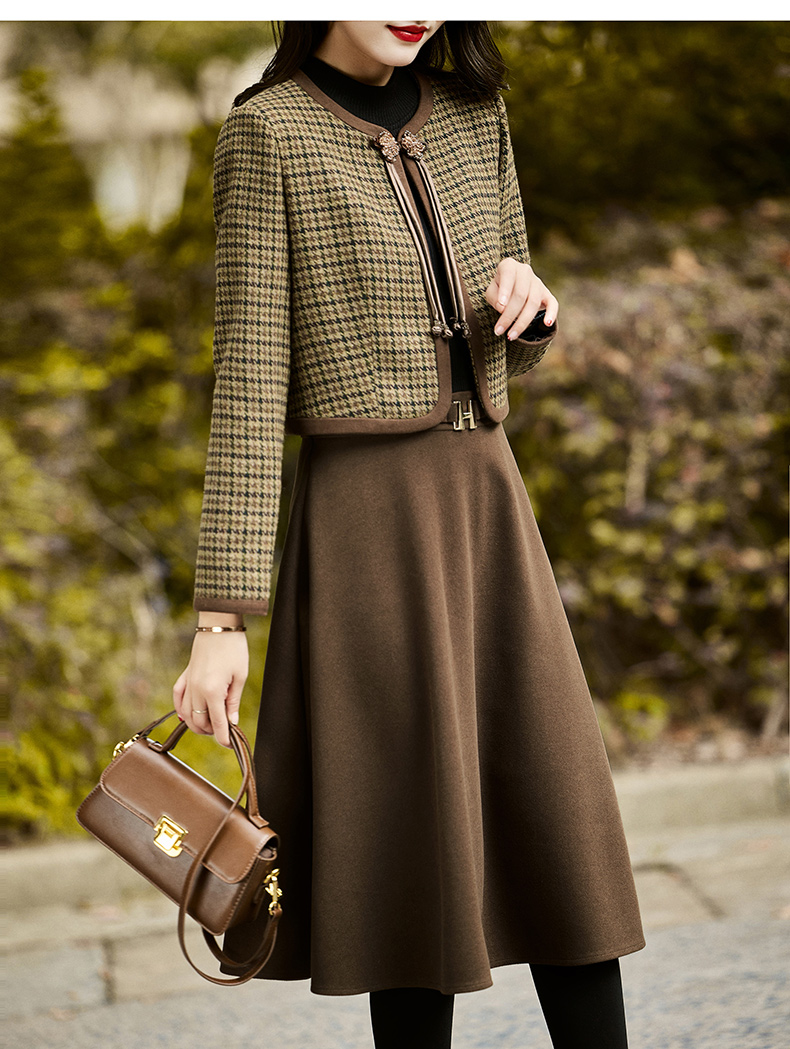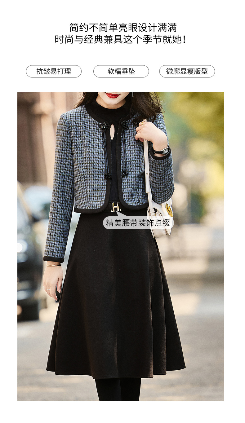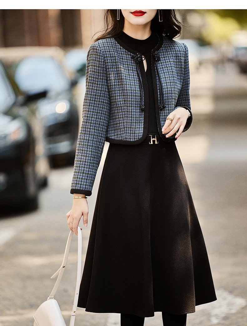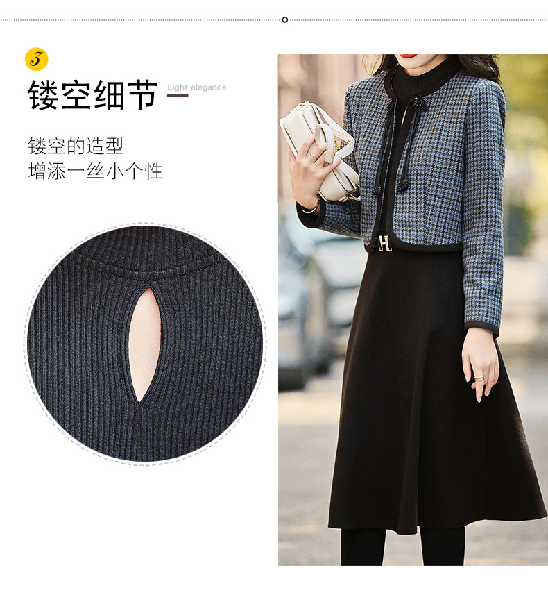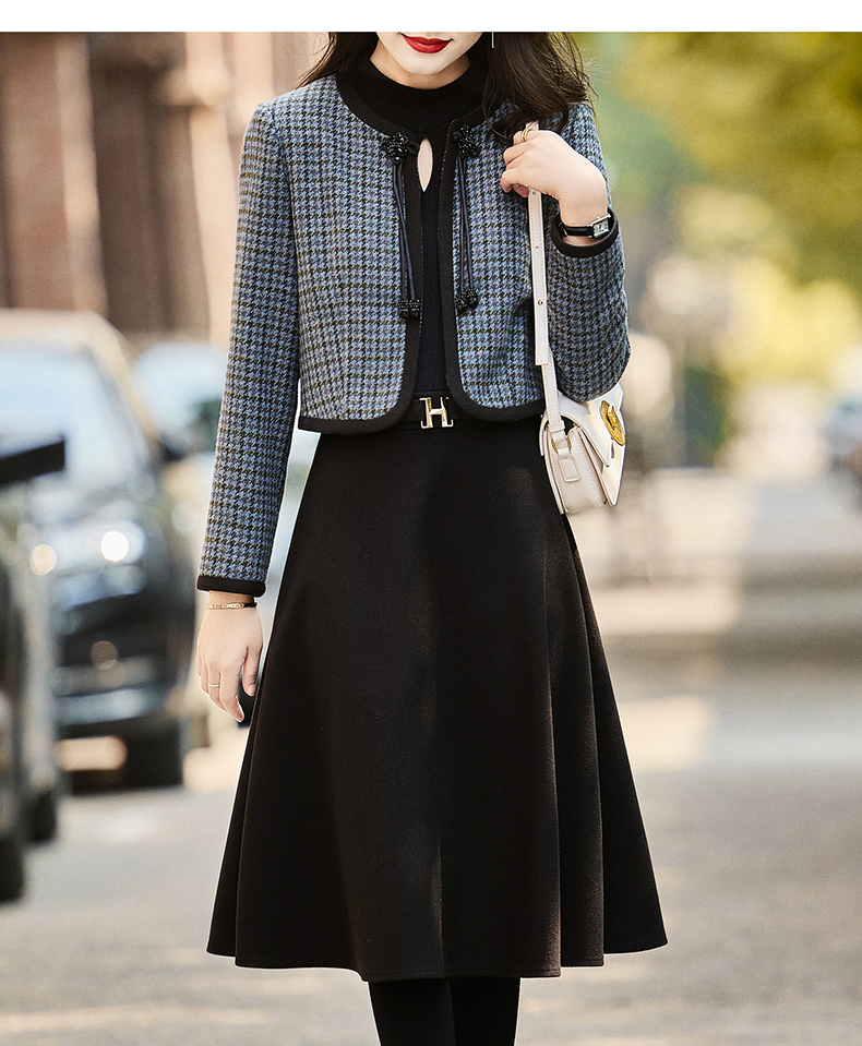 时尚休闲舒适毛呢拼接连衣裙两件套HR-MLJL6912