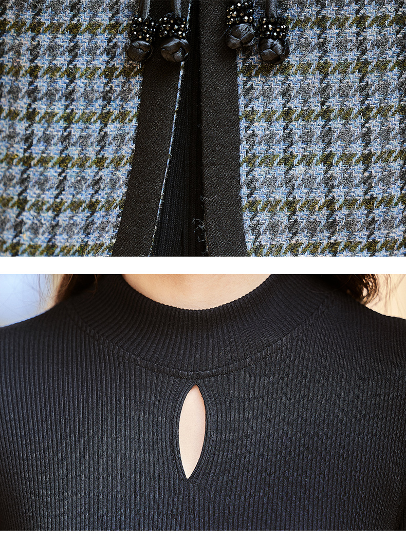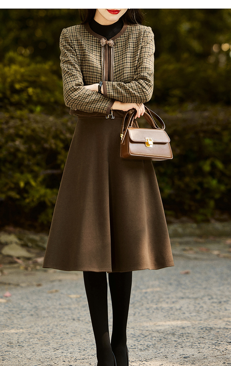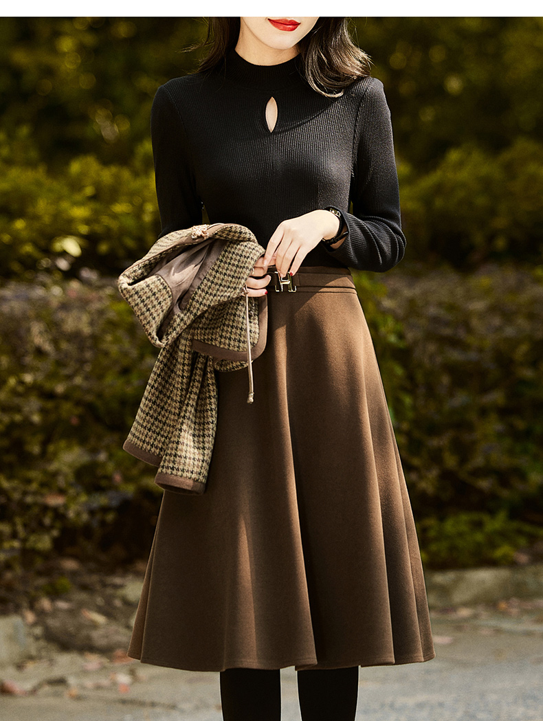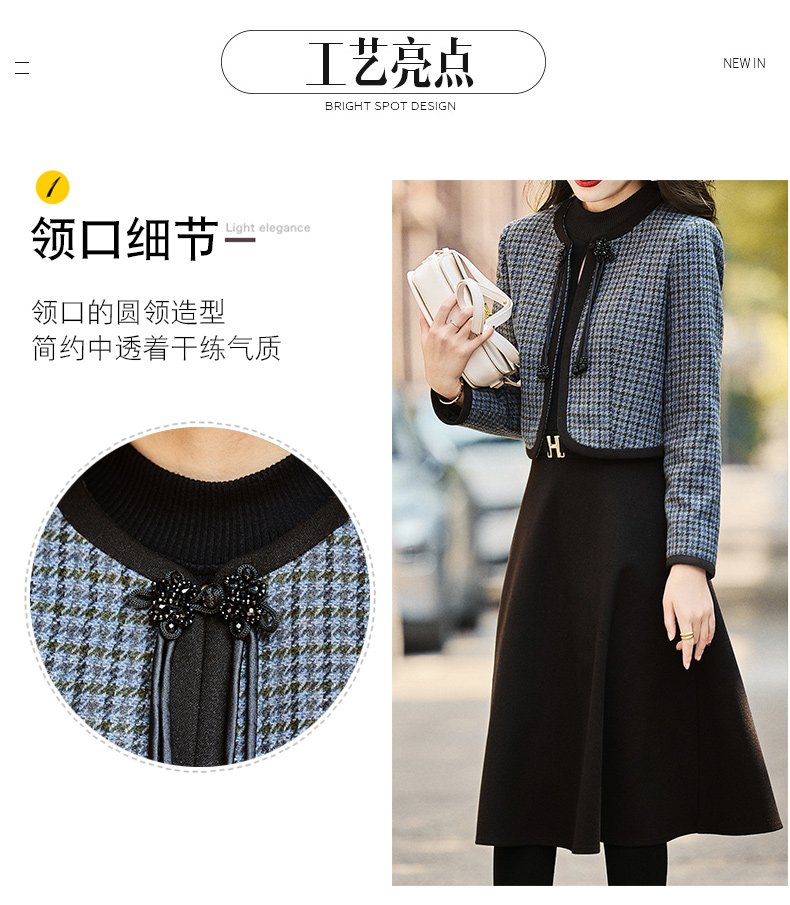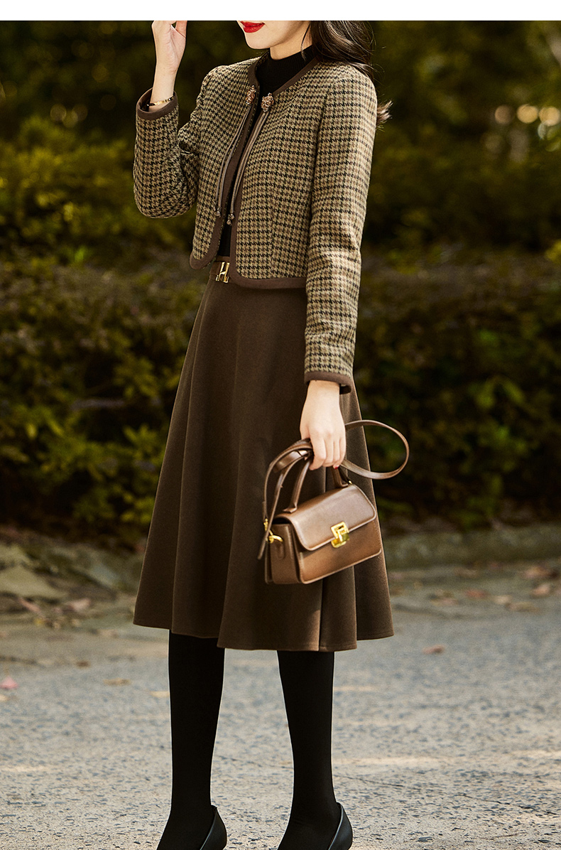 时尚休闲舒适毛呢拼接连衣裙两件套HR-MLJL6912