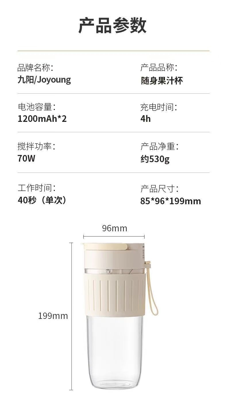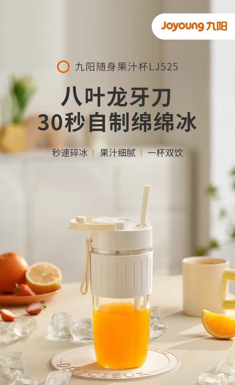 九阳榨汁机多功能便携式电动小型炸水果汁机无线奶昔榨汁杯LJ525