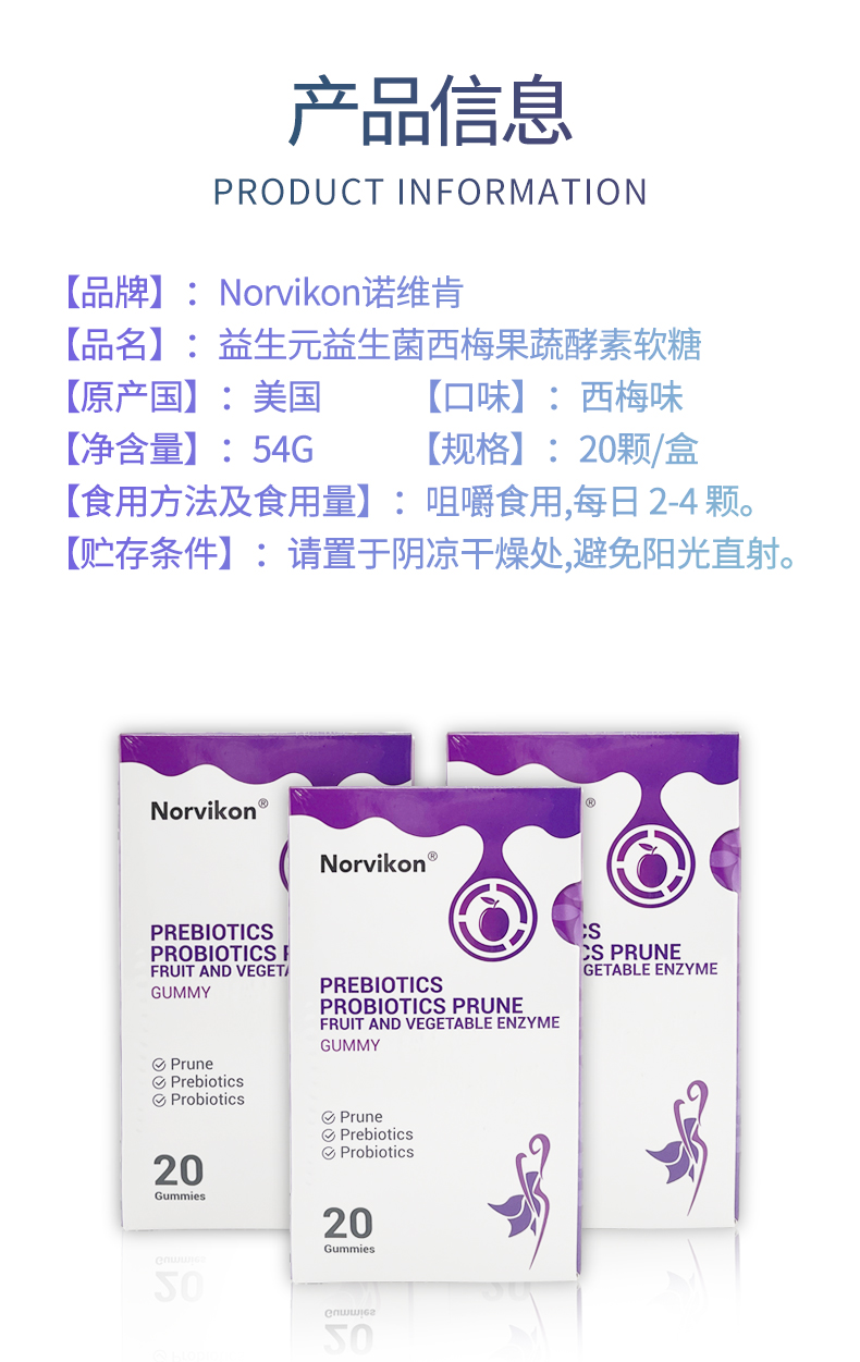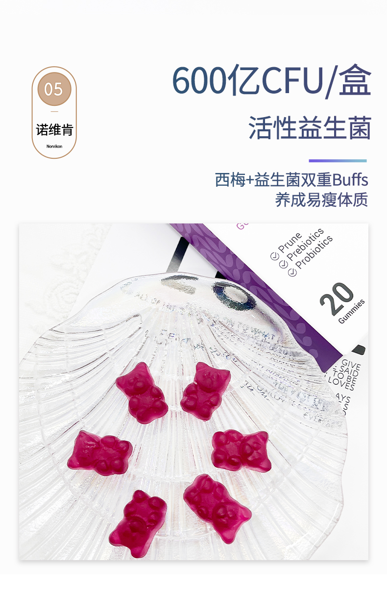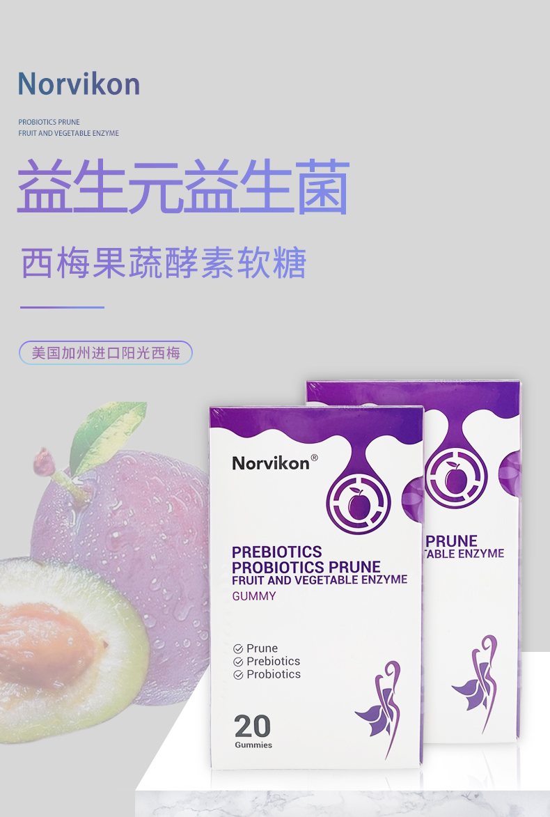 【买5送4 肠道清道夫】NORVIKEN西梅益生菌软糖 美国加州西梅 600亿CFU/盒活性益生菌 不含蔗糖 0脂肪0负担 20颗/盒