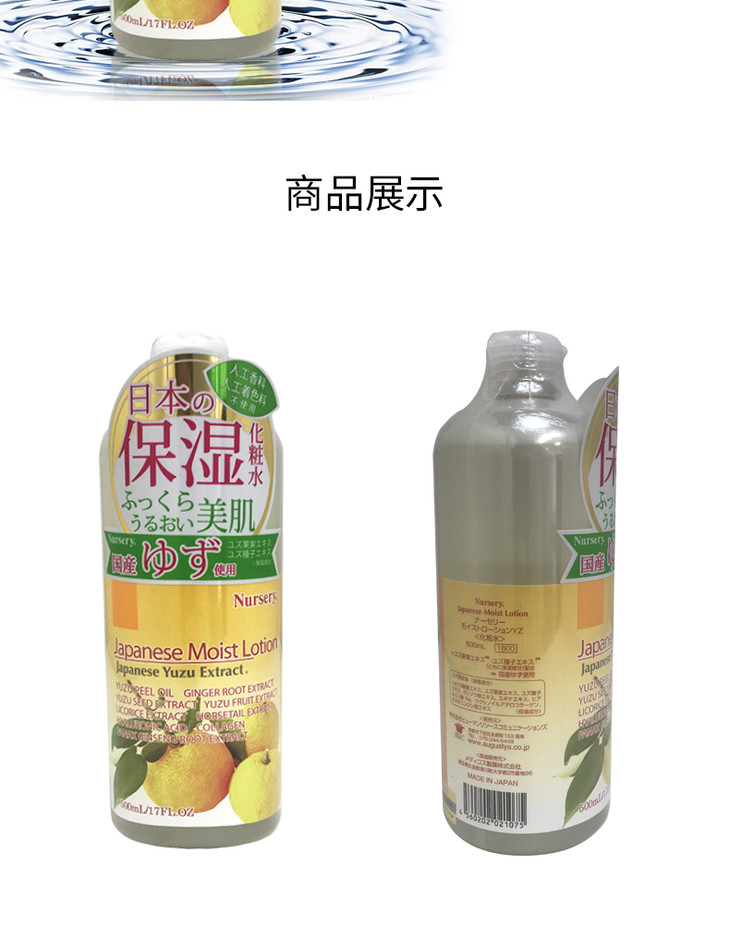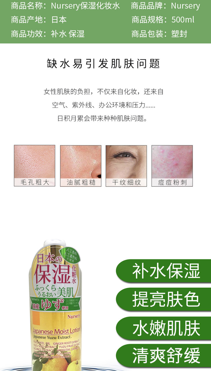 【一般贸易】日本Nursery大柚子精华化妆水 保湿补水清爽控油爽肤水 500ml