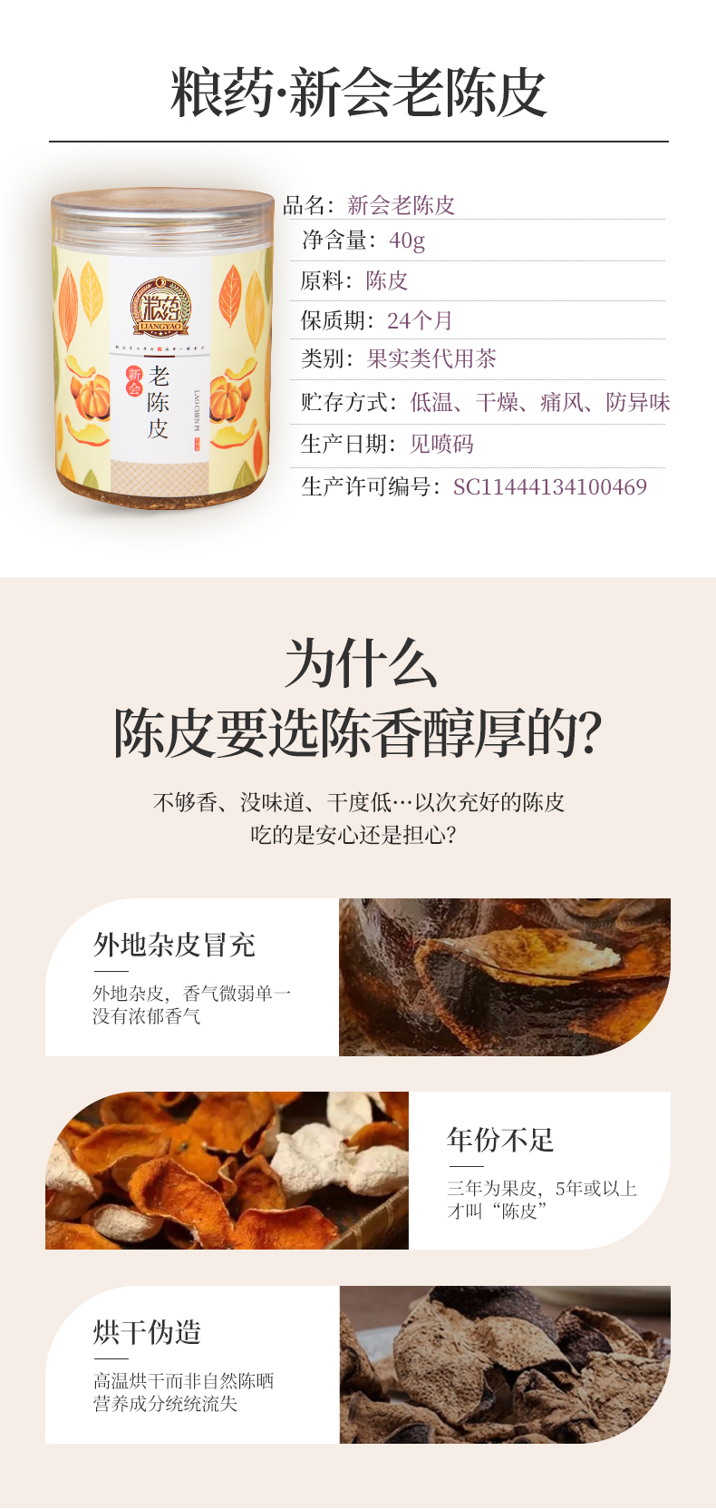 【粮药LY】 新会老陈皮 泡水橘皮 陈皮 老陈皮 40g/罐 耐泡自然
