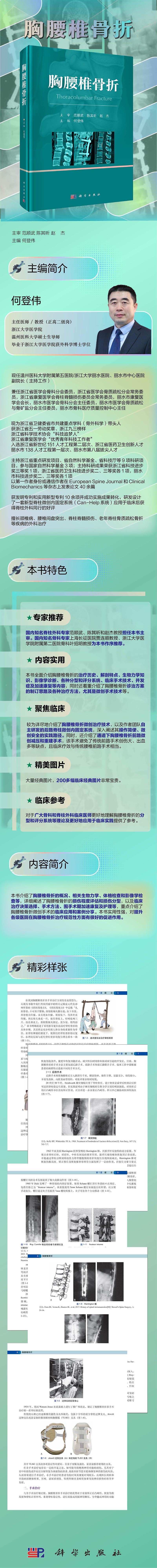 本书介绍了胸腰椎骨折的概况、相关生物力学、体格检查和影像学检查等,详细阐述了胸腰椎骨折的损伤程度评估和损伤分型,以及临床治疗决策选择、手术方法、围手术期加速康复及护理等,重点介绍了胸腰椎骨折微创手术的临床应用和案例分享。本书实用性强,对提升各级医院在胸腰椎骨折治疗规范性方面有很好的促进作用。