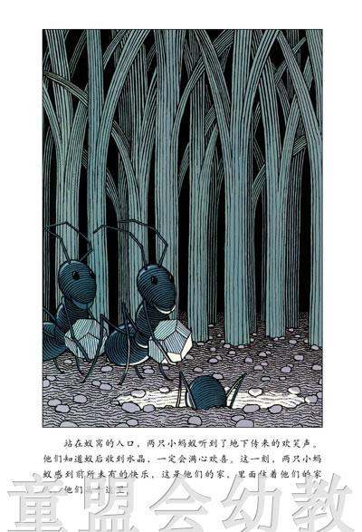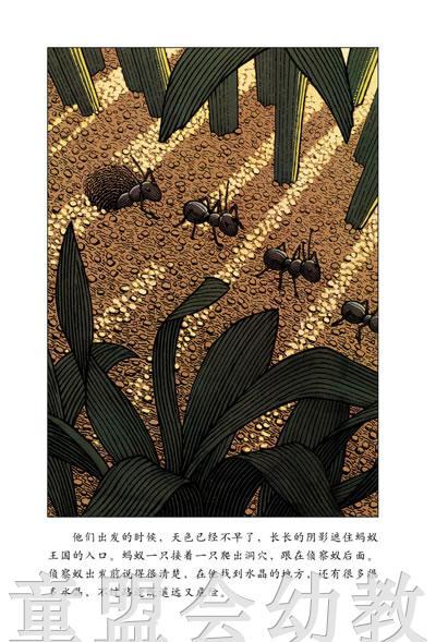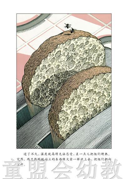 作者范奥尔伯格把图画书分成两种,一种是给孩子安慰的感觉,有预见性的故事;另一种则让孩子曝露到各种事件中,直接感受激烈冲突带给心灵的震荡。本书恰好结合了两个方面:既有可以让孩子们喜欢的蚂蚁世界,又有刻意放大的人类世界的物品,视觉谜语般的阅读感受。既有让人觉得惊险的历险情景,又有让人松一口气的万事大吉的结尾。