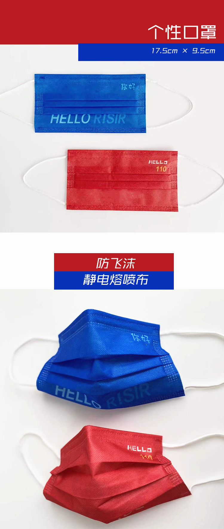 叱咤个性口罩(一套10片5红+5蓝)