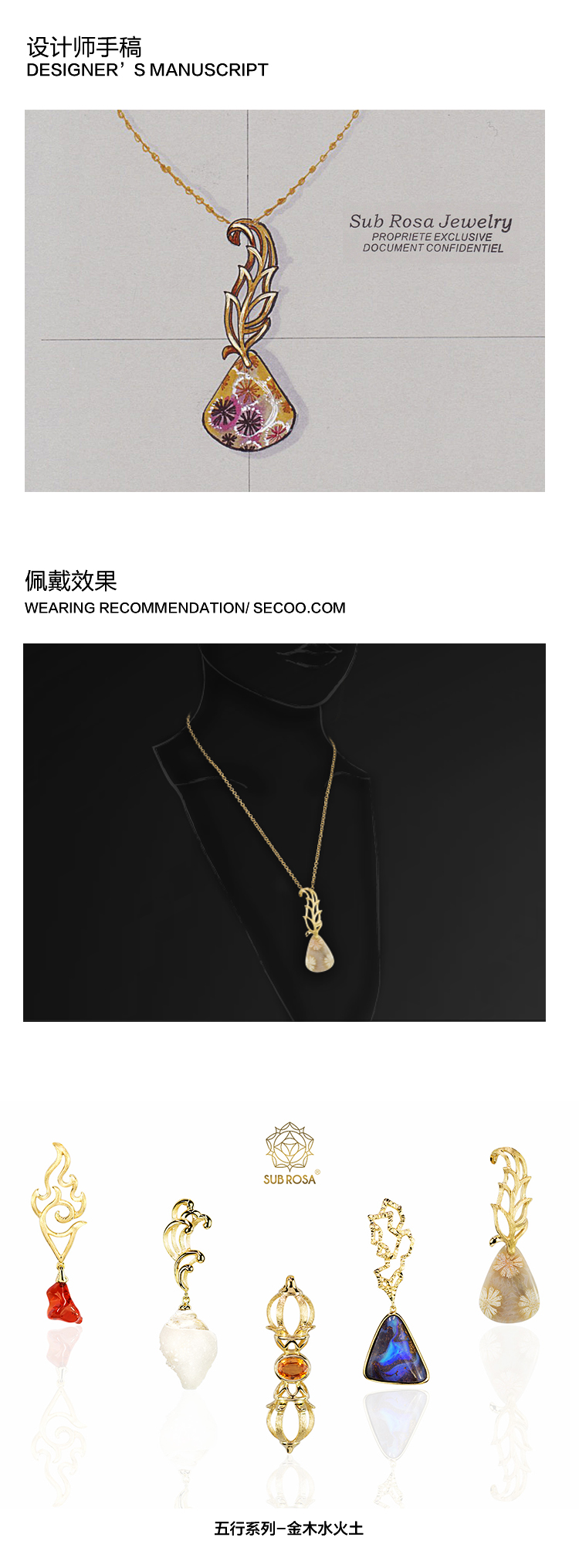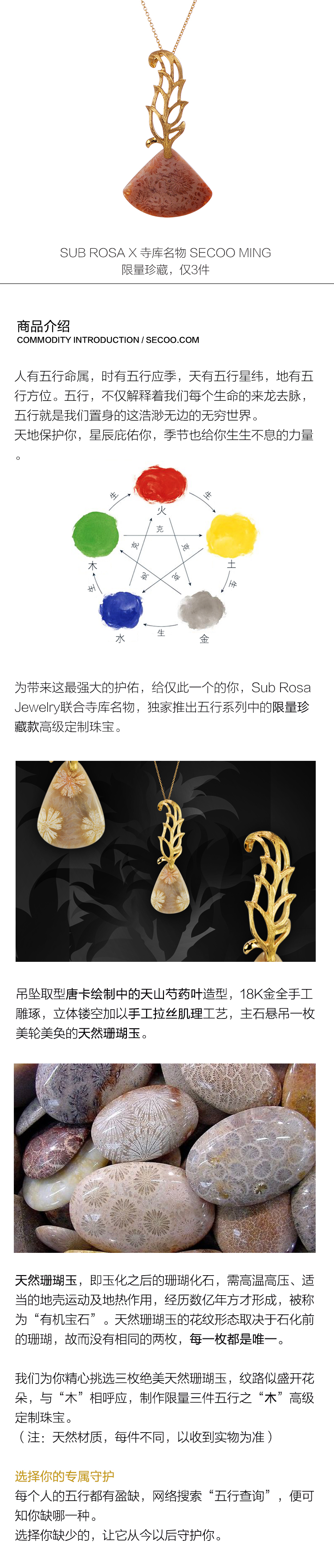 五行之木 限量开运 SECOO名物 X SUB ROSA 项链项饰 9k金镀18K金宝石天然珊瑚玉吊坠/项链