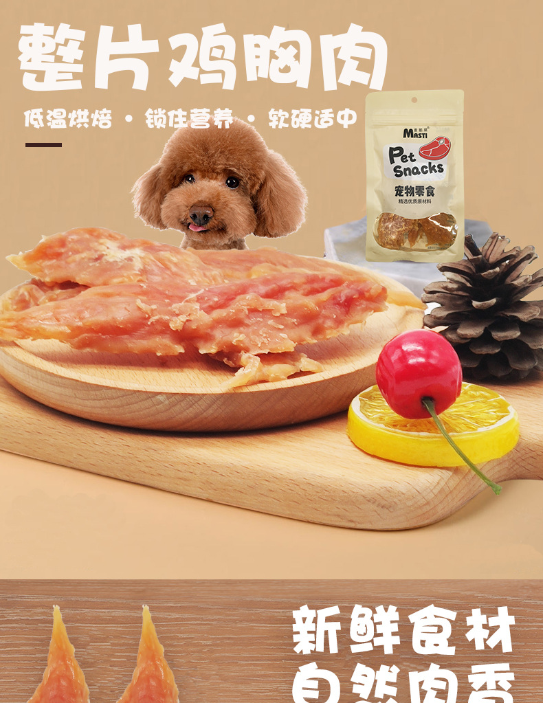麦斯蒂宠物零食烘焙鸡胸肉100g 鸡小胸鸡肉干奖励狗狗零食猫零食批发