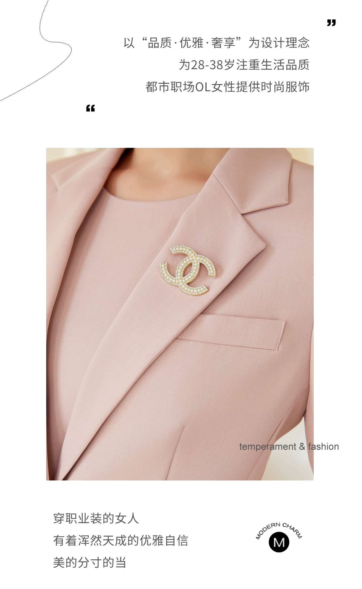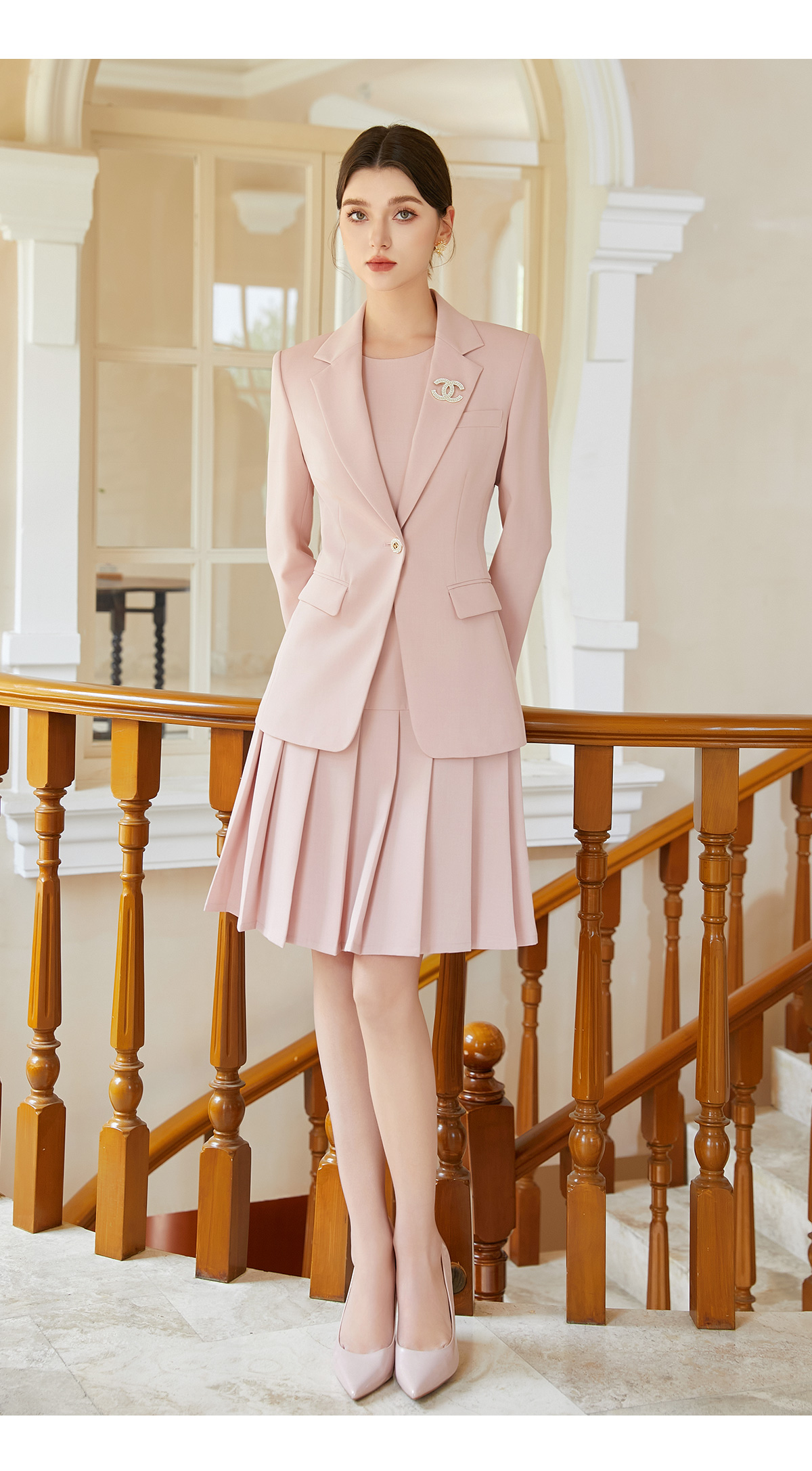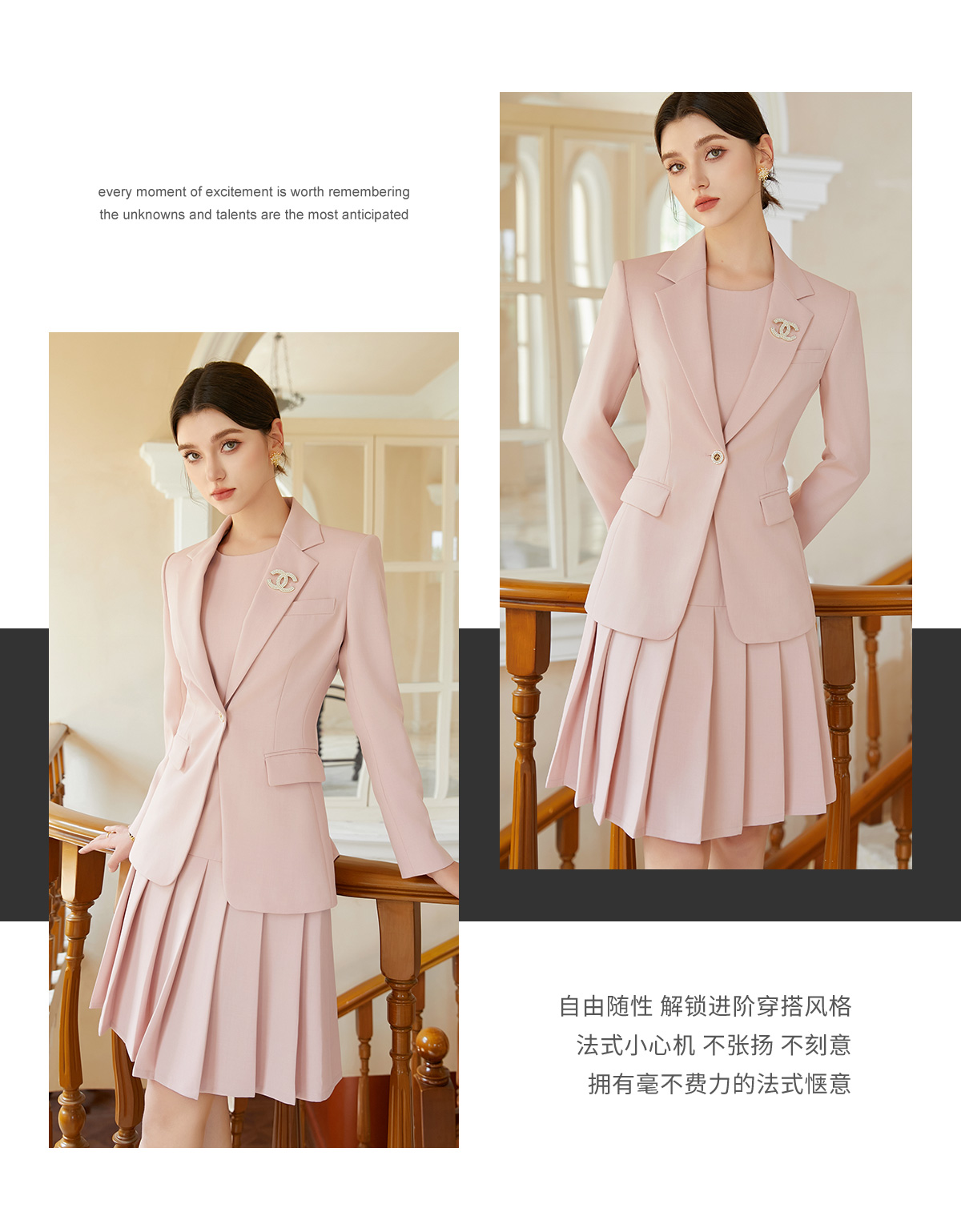 IWY/粉色西装套装时尚洋气减龄显瘦遮肉两件套连衣裙女高端西C2036+Q1188