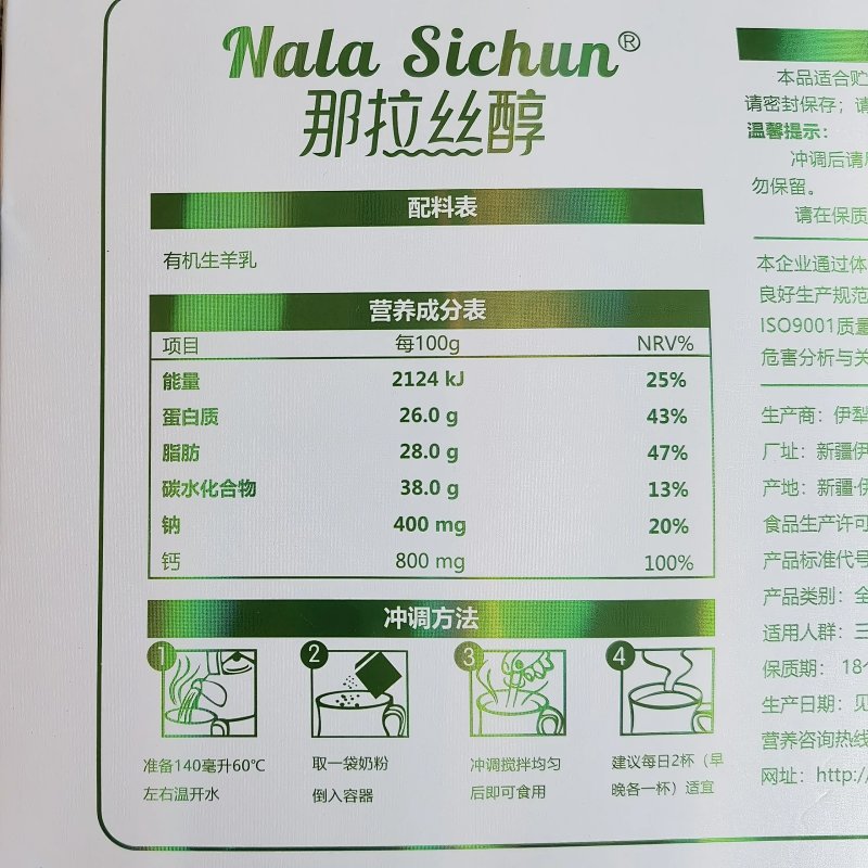 那拉丝醇纯有机全脂纯羊奶粉 成人儿童新疆伊犁 300g/盒