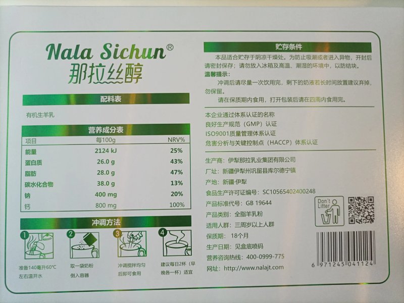 全脂羊奶粉,采用新鲜纯羊乳生产,基本保持了乳中的原有营养成分,它颗粒均匀,速溶性好,奶香浓郁,口味纯正,营养丰富,深受广大群众的热爱。