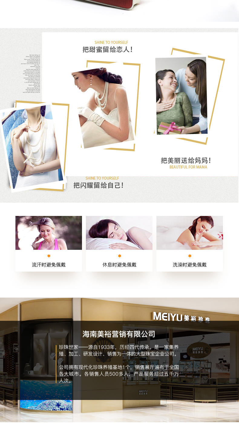 珍珠世家,代代相传。美裕珍珠,1933年起源于印尼,成长于海南岛。依托海南资源优势和自身专业优势,以经营南珠、南洋珠为主,专注于珍珠文化的挖掘和传播,把珍珠代表的爱意,永不间断地传承下去。
