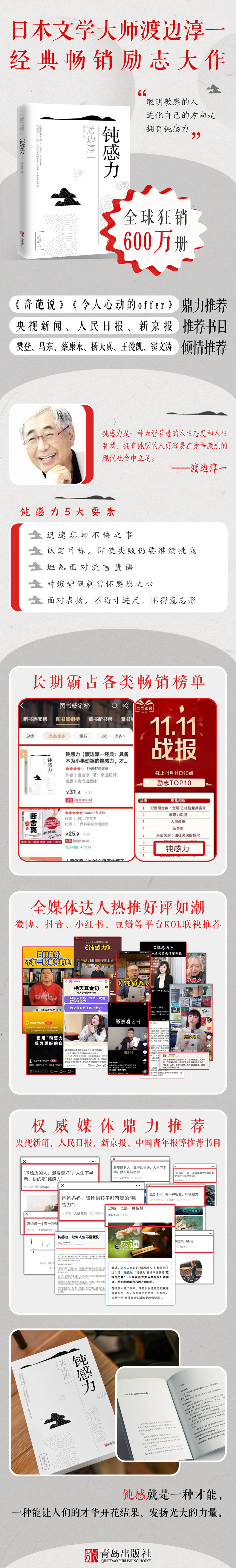 因为渡边淳一,世界上多了一个叫“钝感力”的词。“钝感力”可解释为“迟钝的力量”,即从容面对生活中的挫折伤痛。