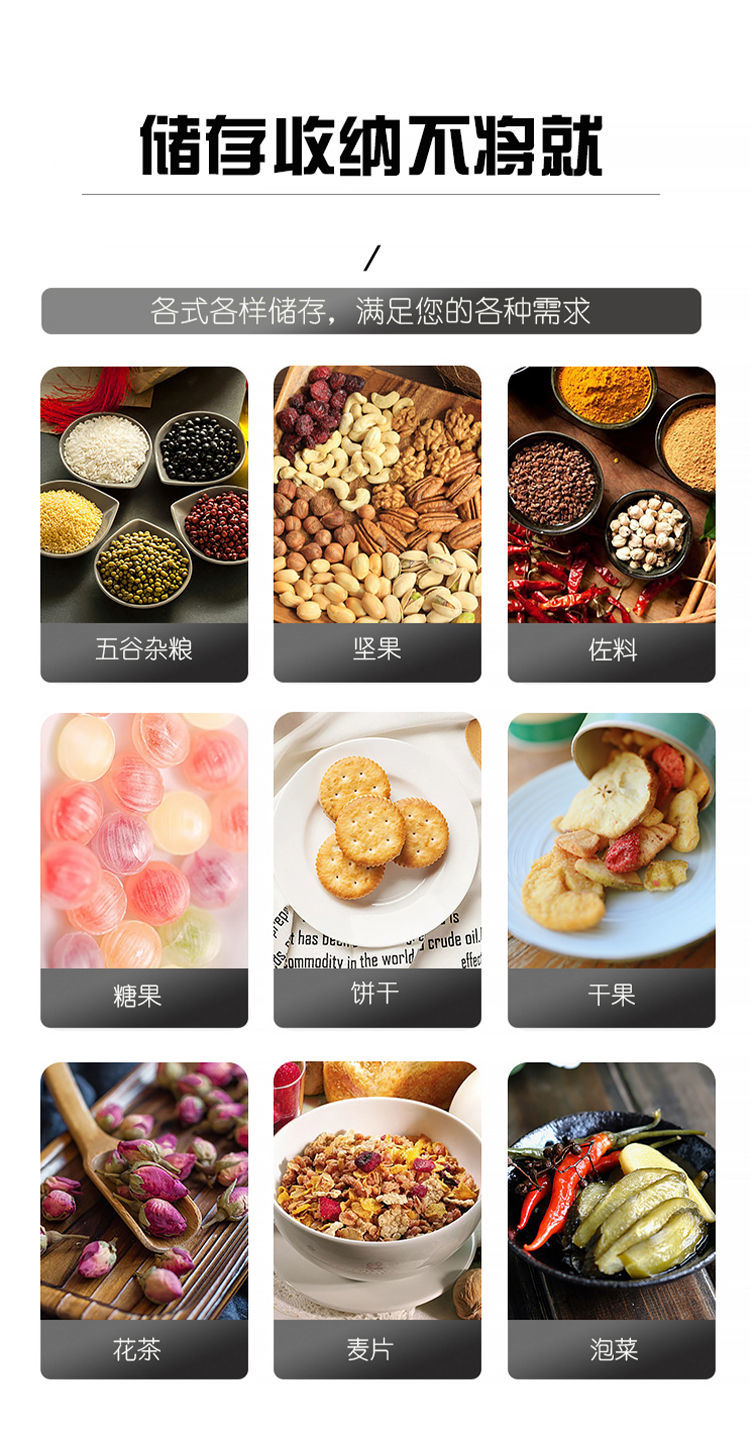 1.密封防潮,一罐多用,可泡菜/可放谷物杂粮/可放面粉奶粉/可放干货零食