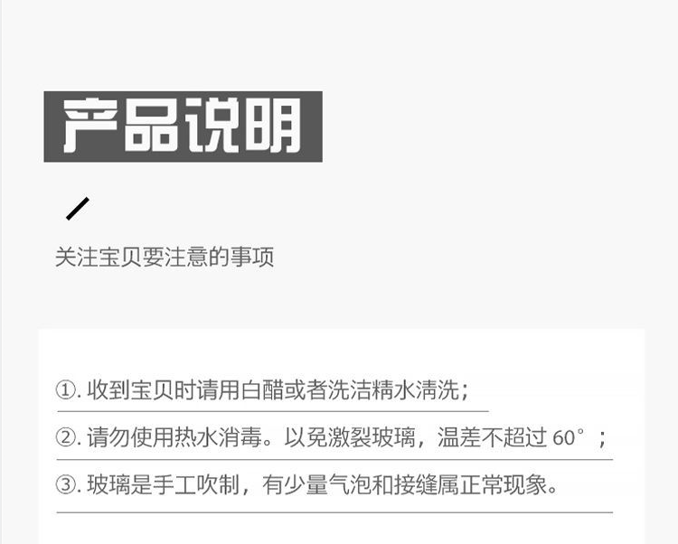 2.请勿使用热水消毒。以免激裂玻璃,温差不超过60°