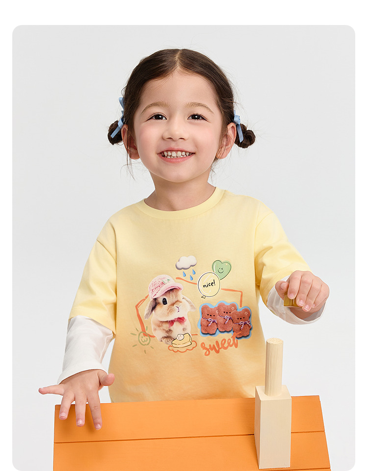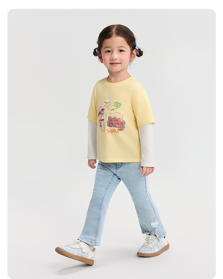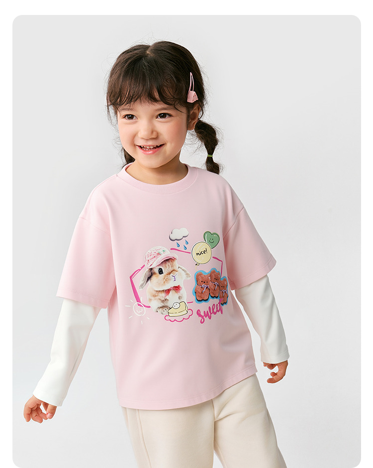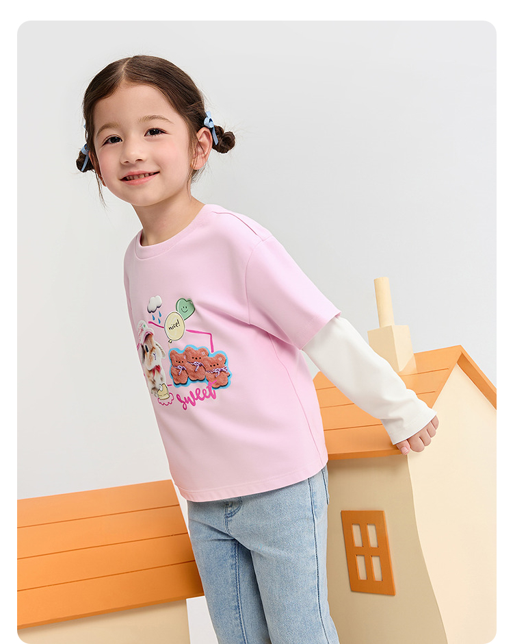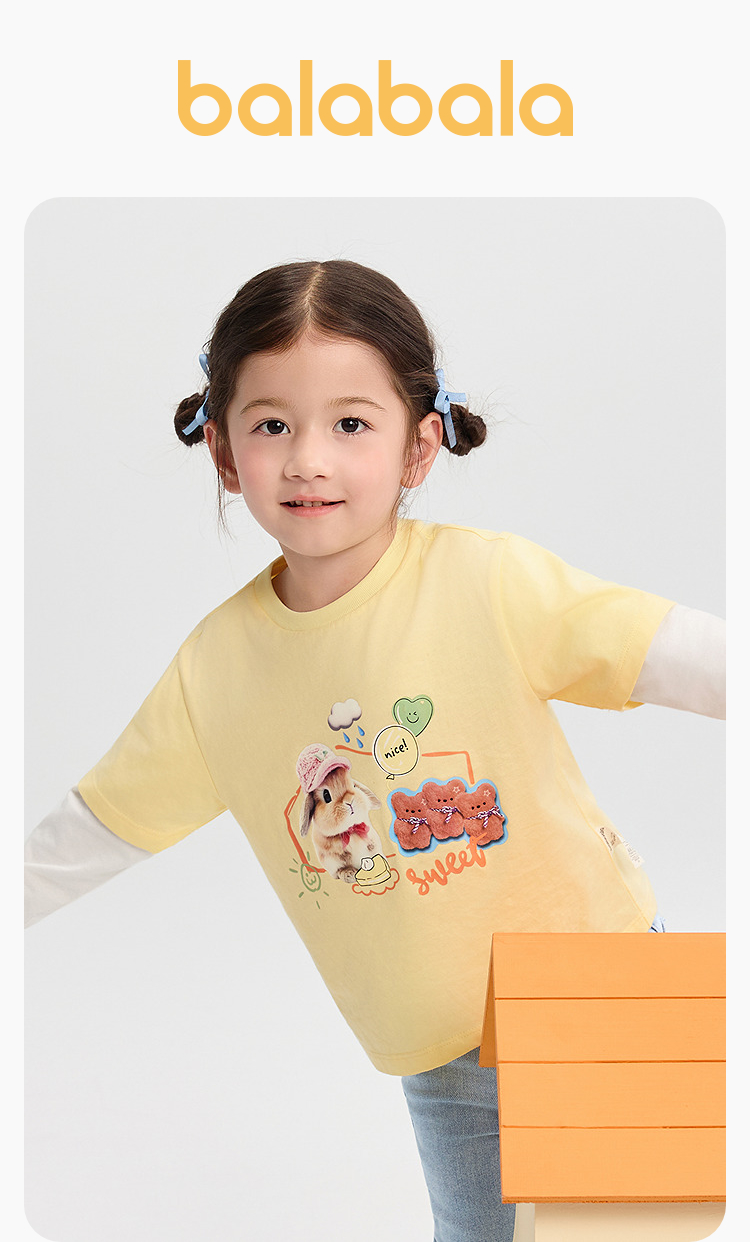 巴拉巴拉童装宝宝t恤纯棉假两件长袖上衣女童秋装2025新款印花萌