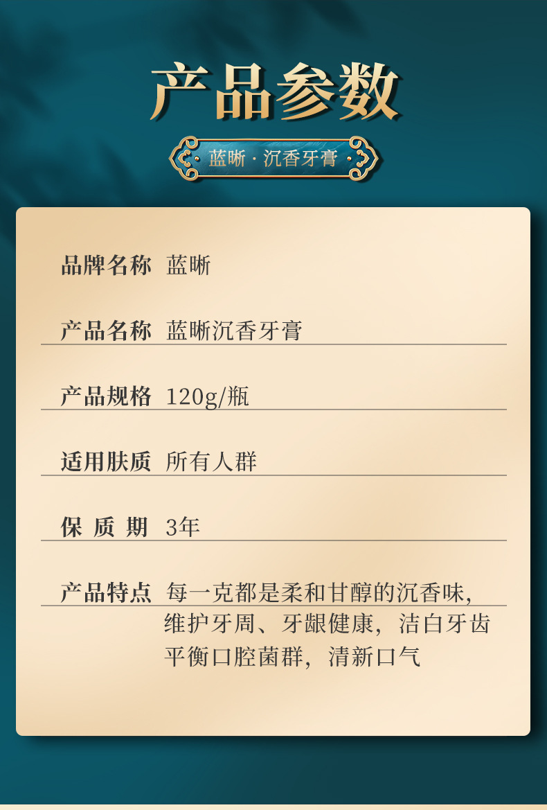沉香牙膏 蕴含沉香精华 口齿留香 120g 20088842