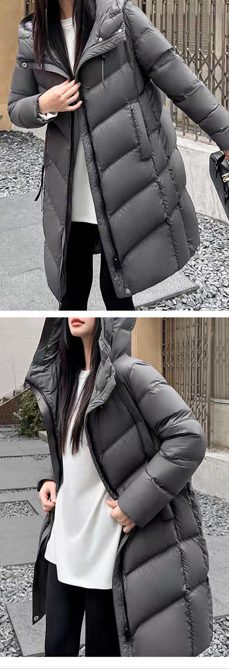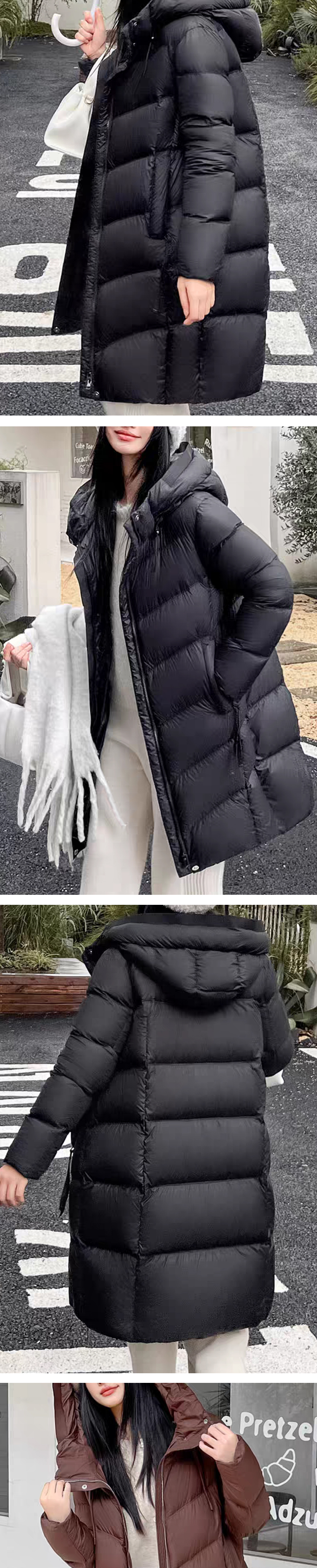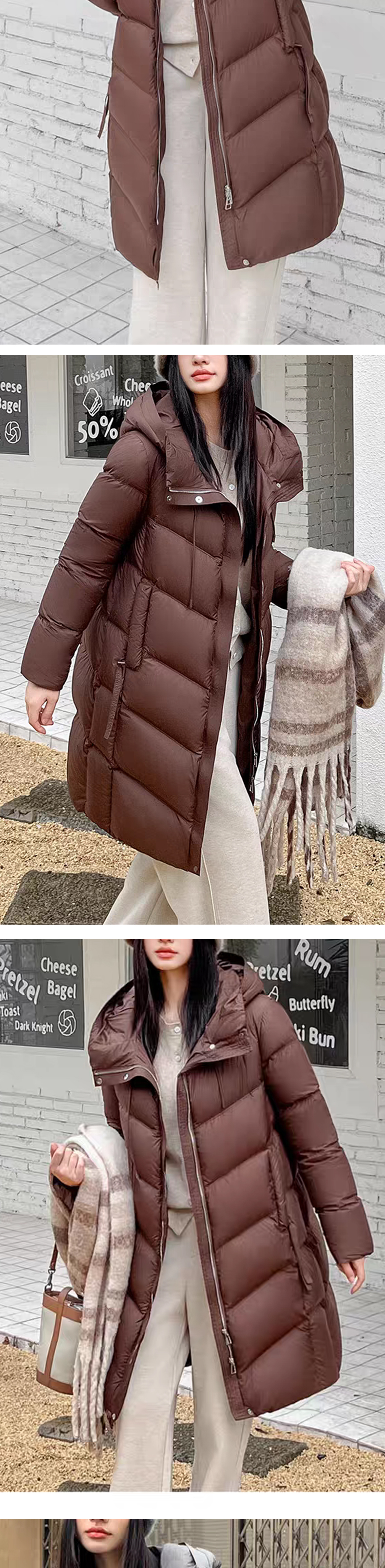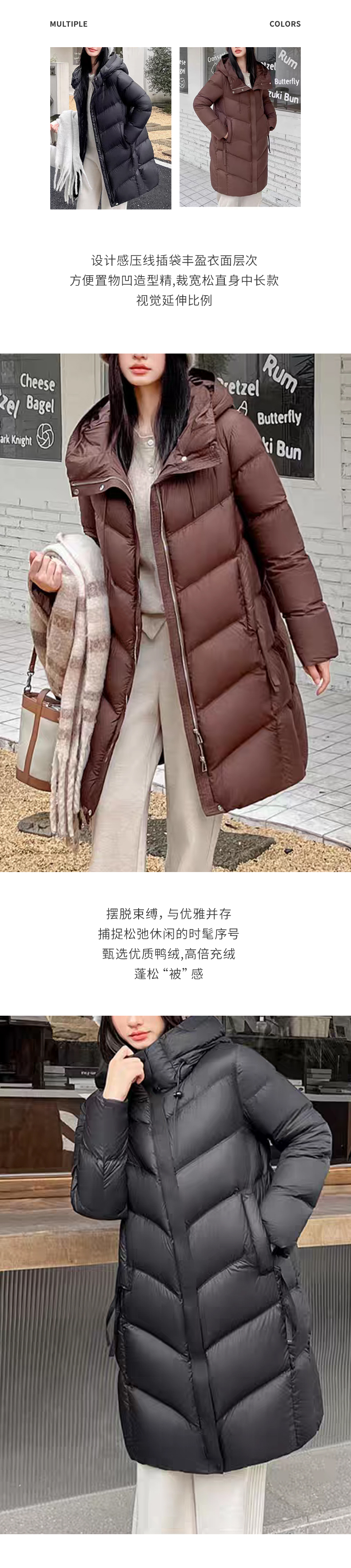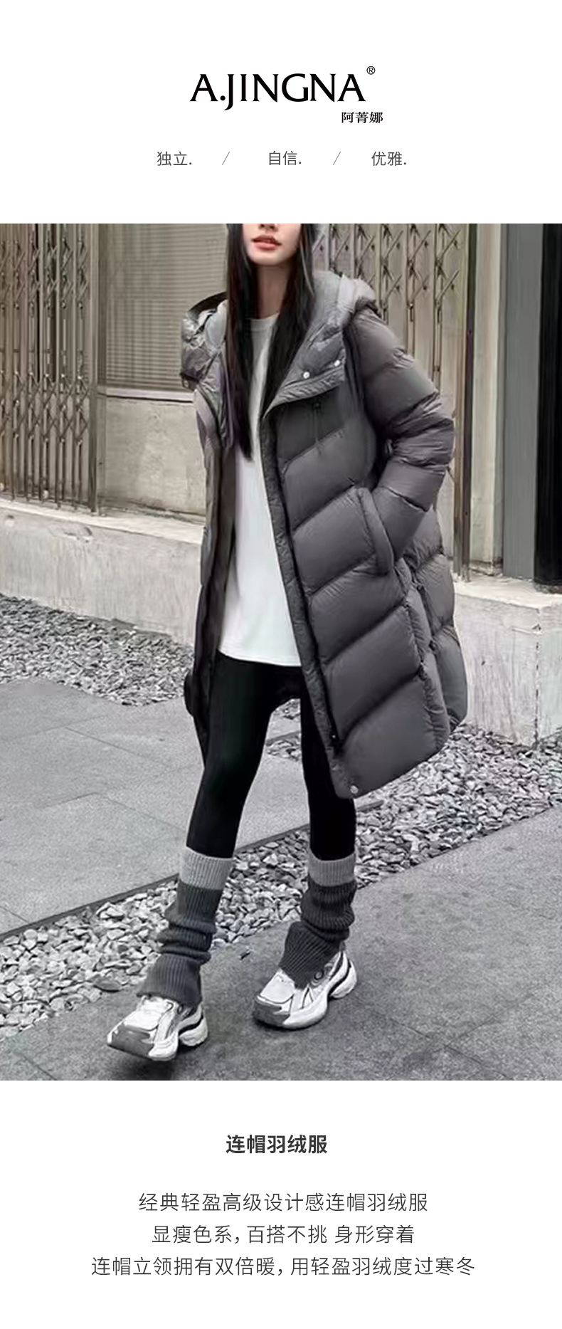 【 连帽立领】阿菁娜冬季新款显瘦中长款羽绒服连帽立领双倍暖直身剪裁松弛感高蓬松鸭绒F30D216022