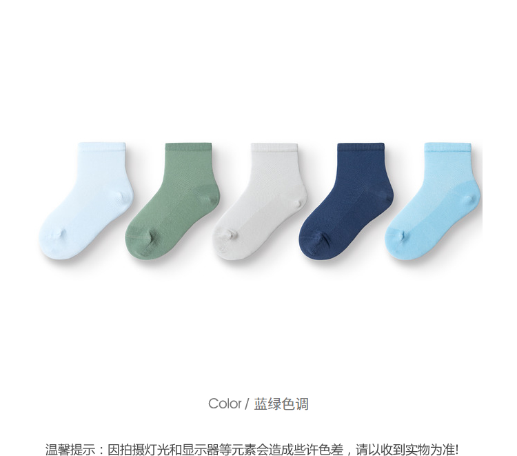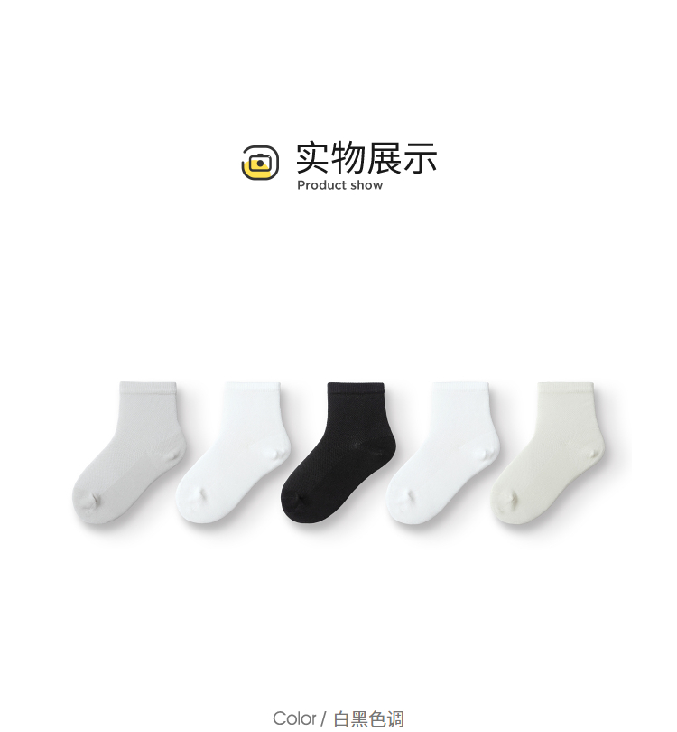巴拉巴拉儿童袜子夏季网眼儿童运动袜透气男童女童小童宝宝五双装