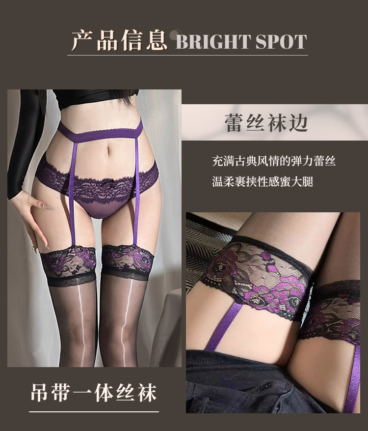 霏慕 夜玫瑰吊带一体极光丝袜7329 黑丝袜吊袜带轻薄蕾丝性感夫妻刺激情趣内衣