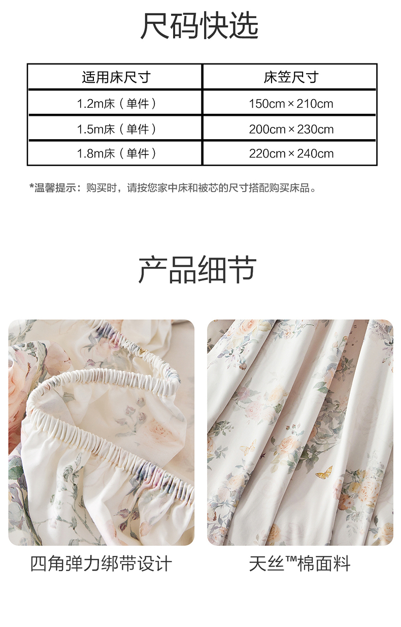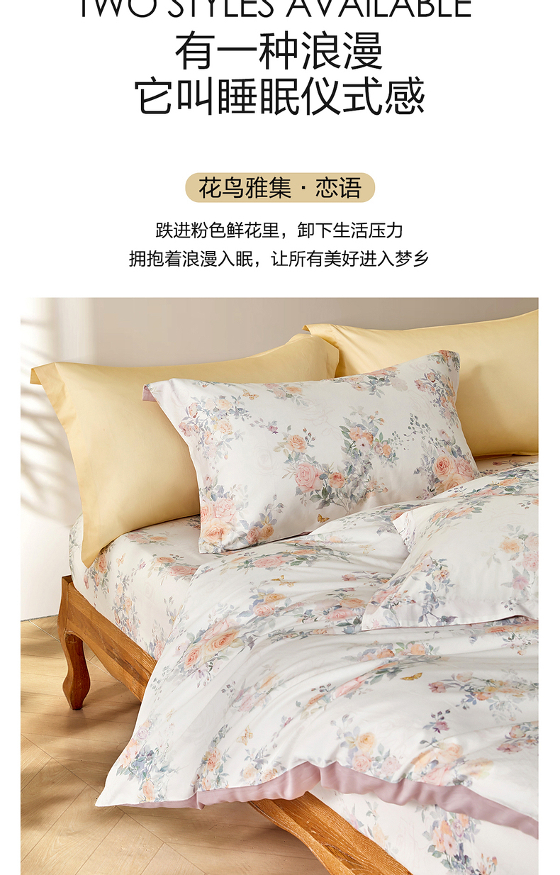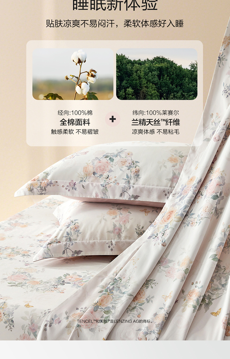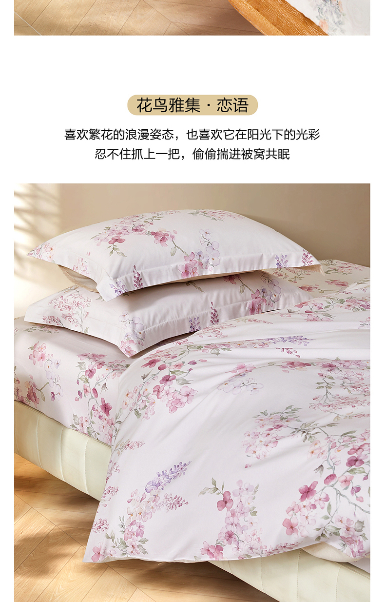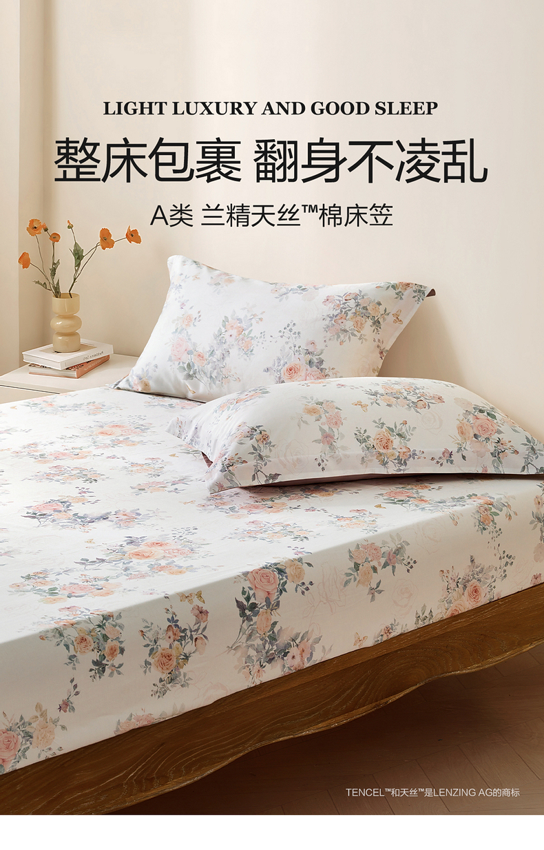 水星家纺A类天丝棉床笠棉柔亲肤花鸟雅集床上用品床笠严选