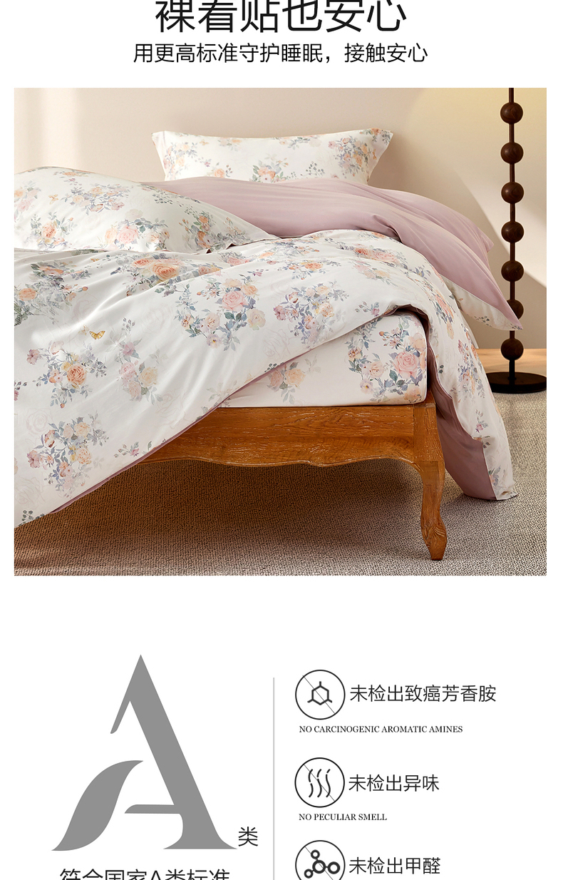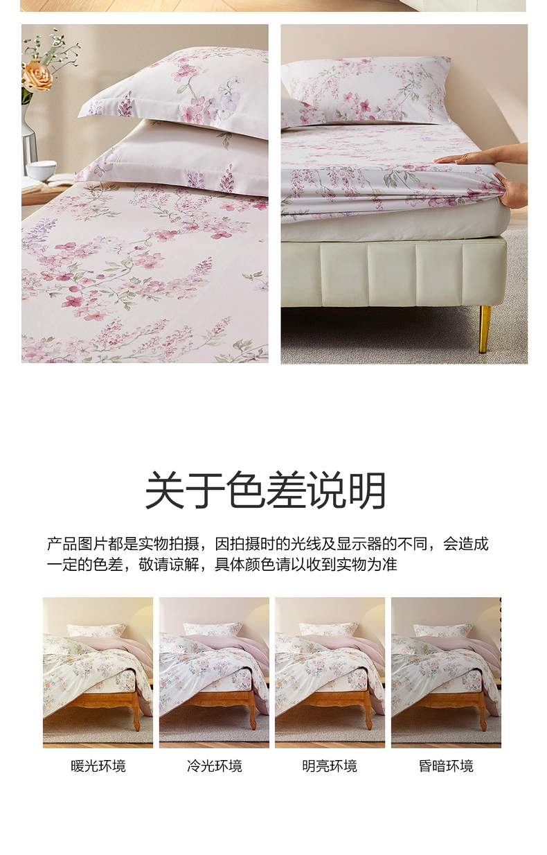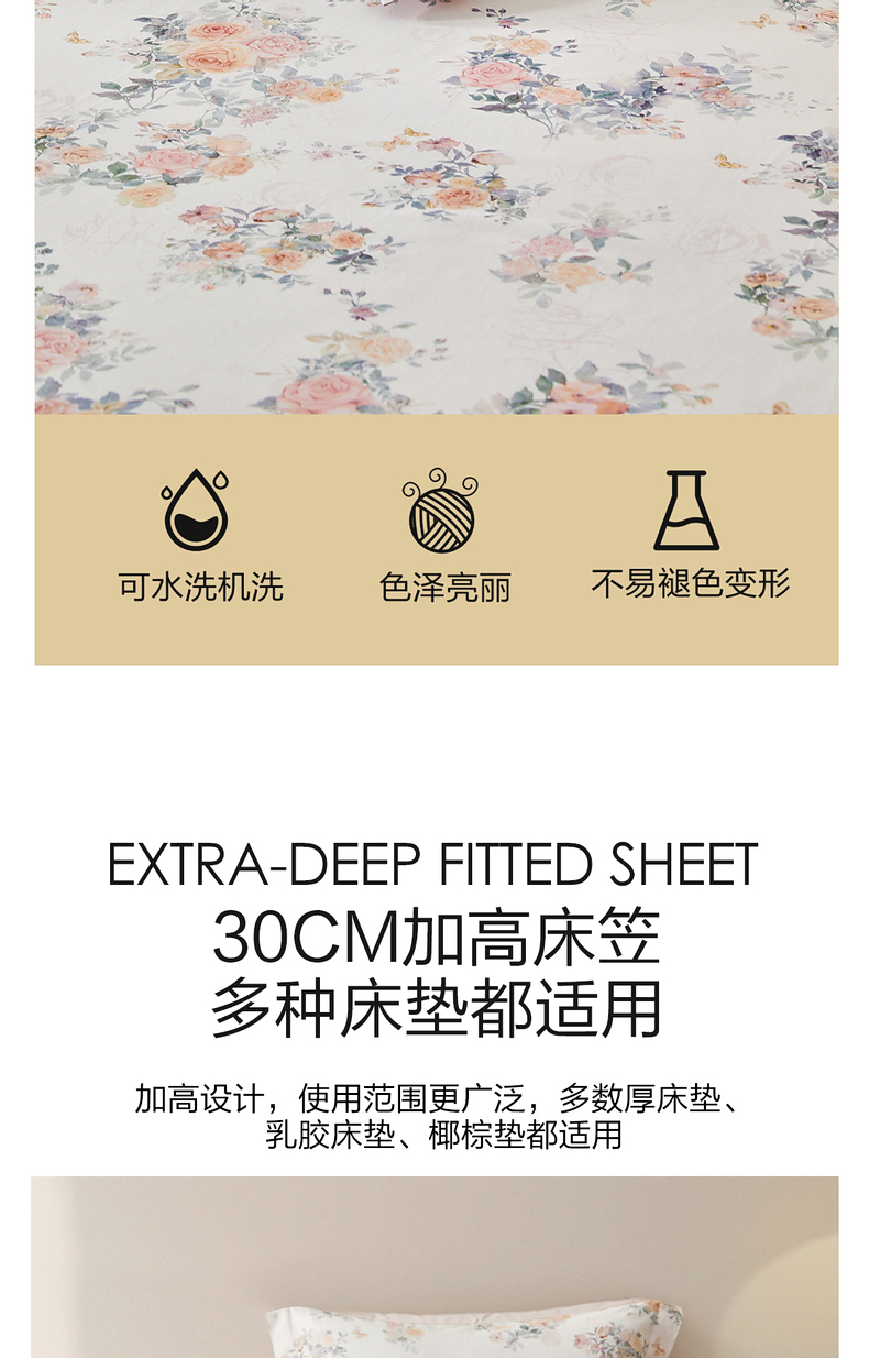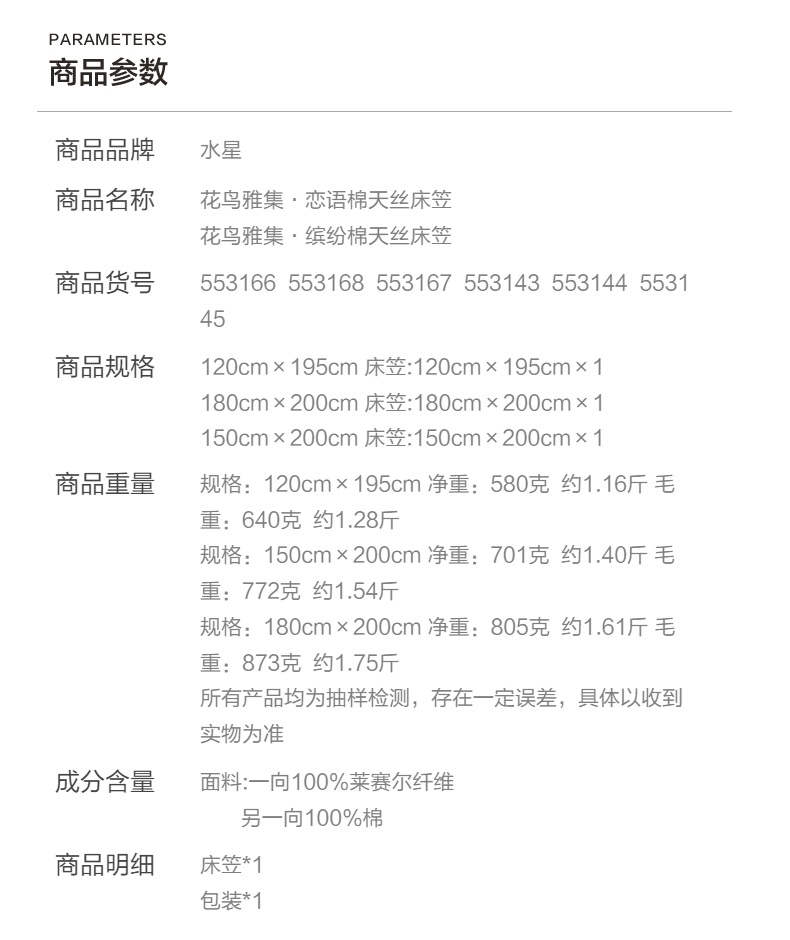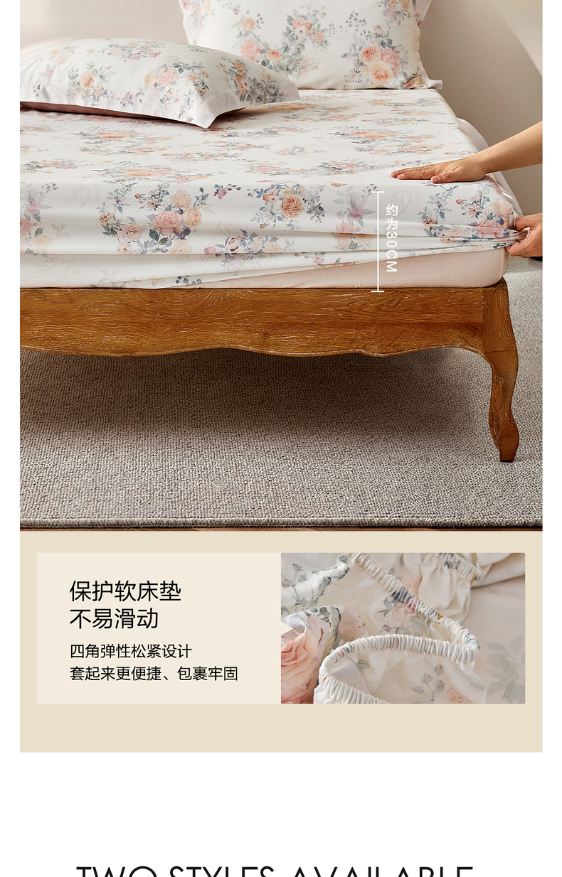 水星家纺A类天丝棉床笠棉柔亲肤花鸟雅集床上用品床笠严选