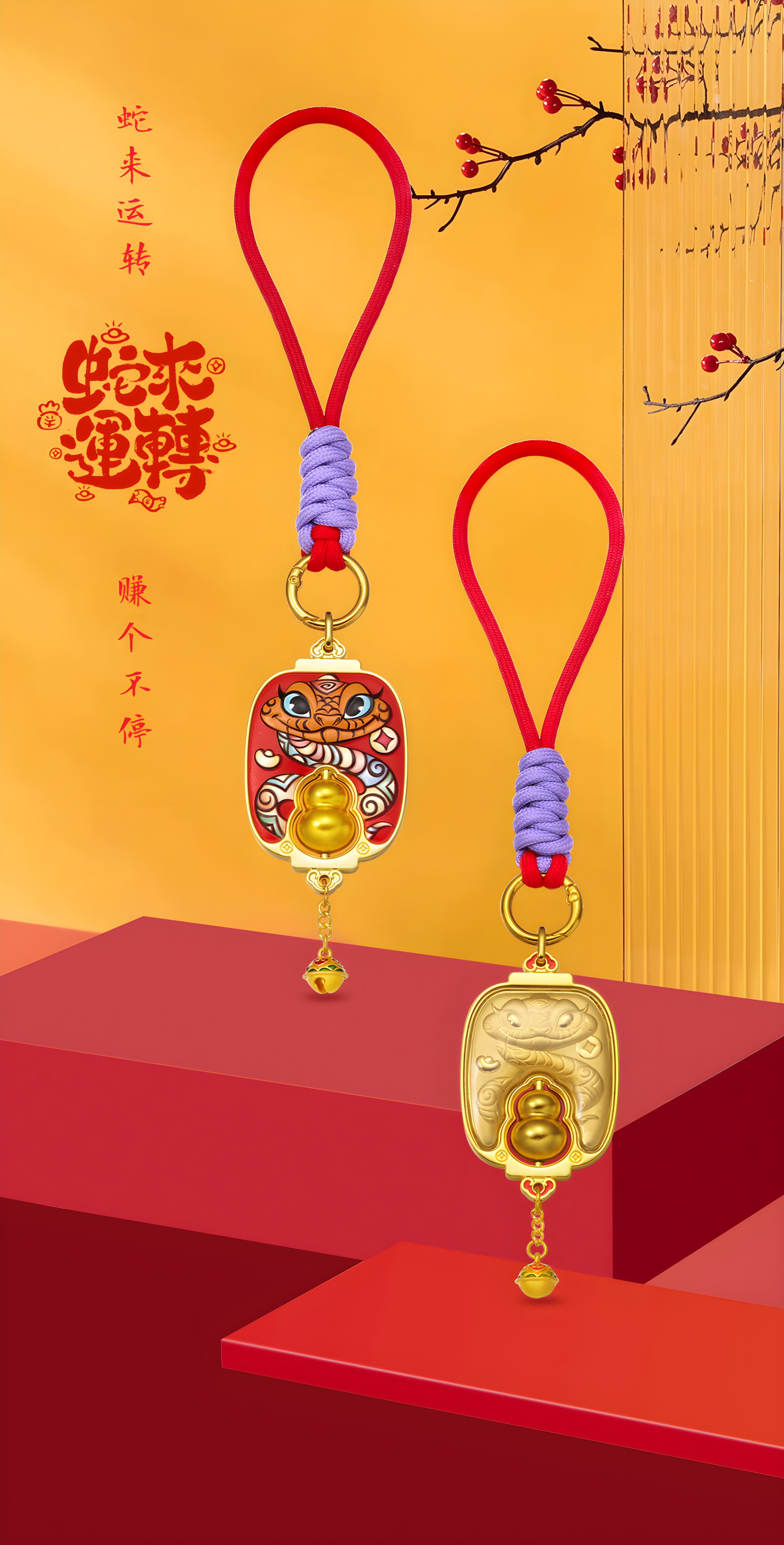 足金蛇来运转挂件(葫芦款)
