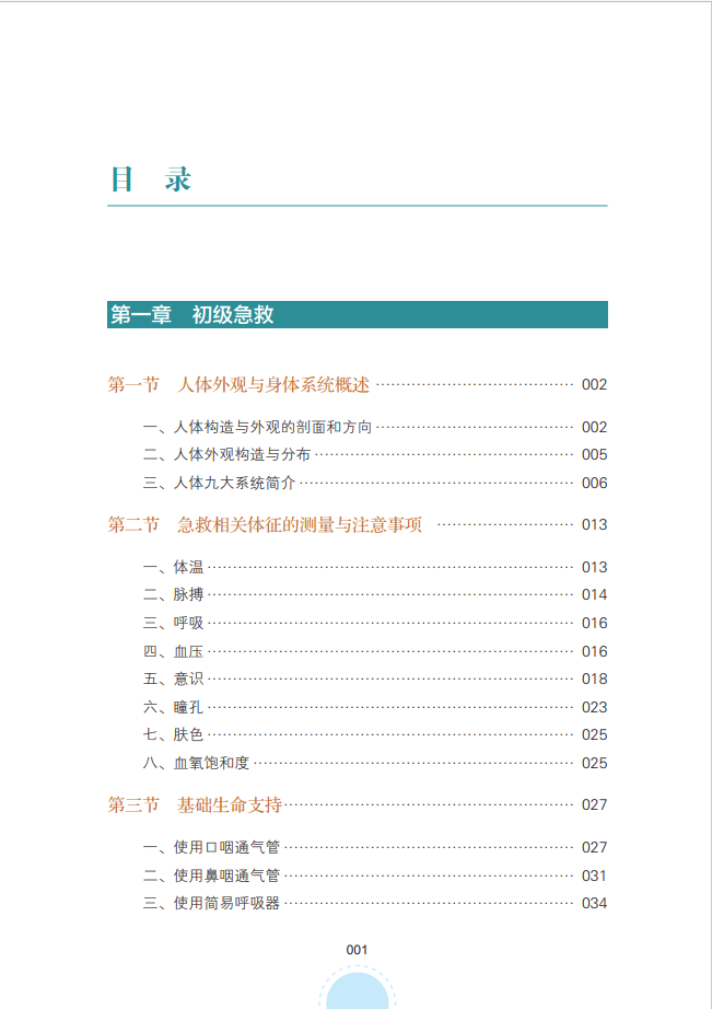 本书分为初级急救和高级急救两大章,内容涉及人体基础解剖、急救相关体征的测量、基础生命支持、病情评估、基本急救技术和常用急救流程等相关知识。