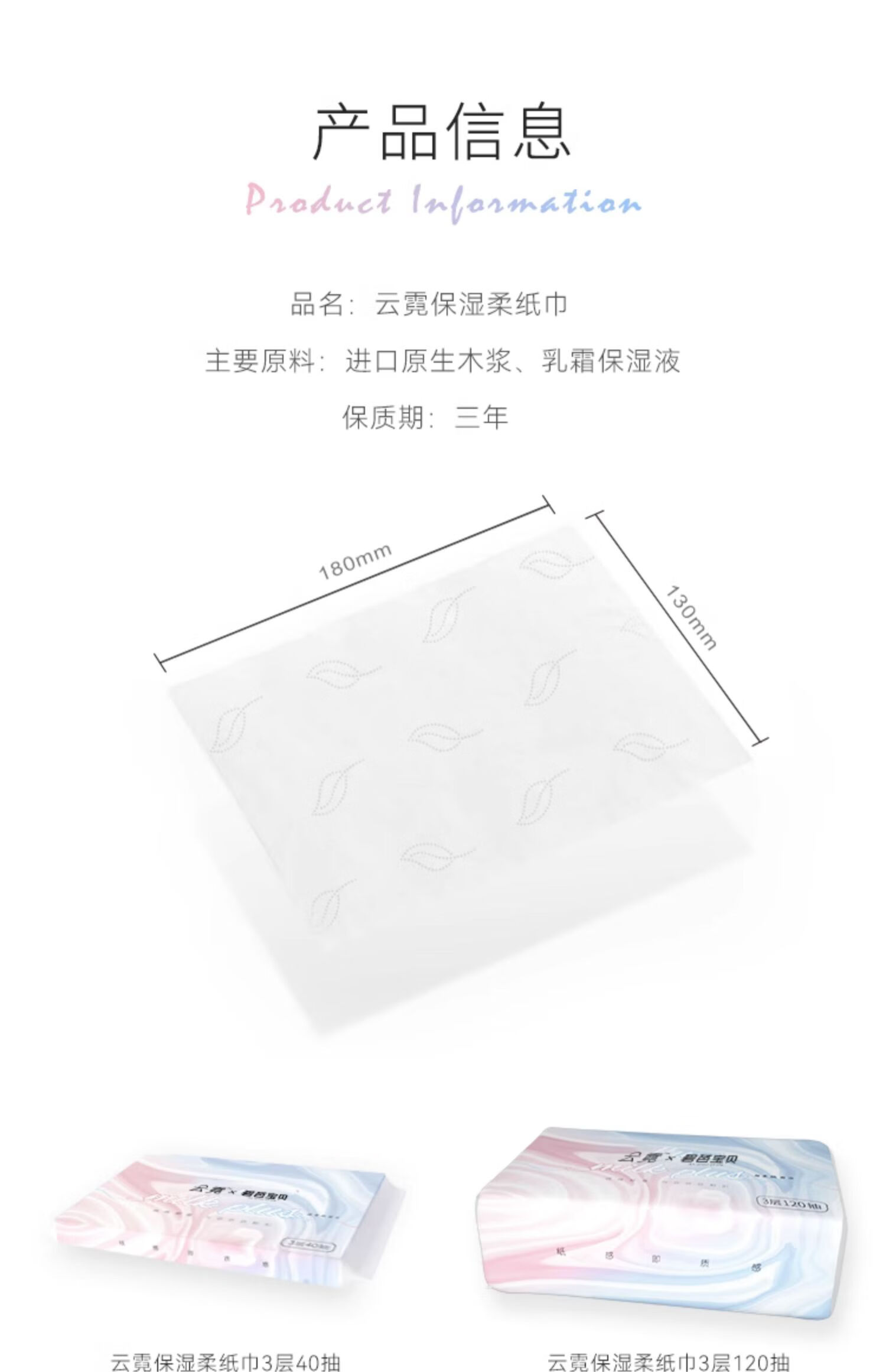 碧芭云霓保湿柔纸巾干湿两用新生儿抽纸40抽*20包