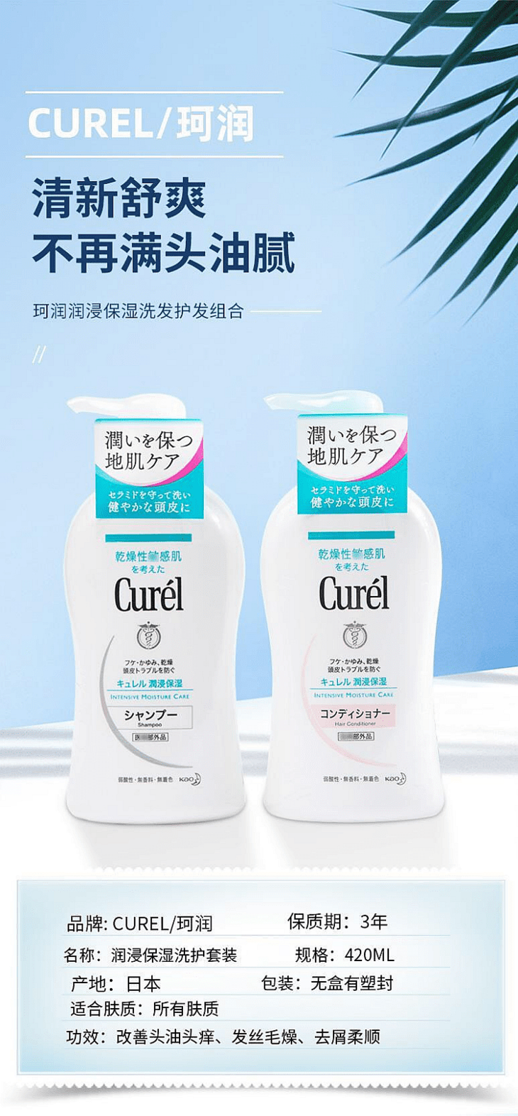 日本 Curel珂润 润浸保湿洗发水+护发素套装 420ml+420ml