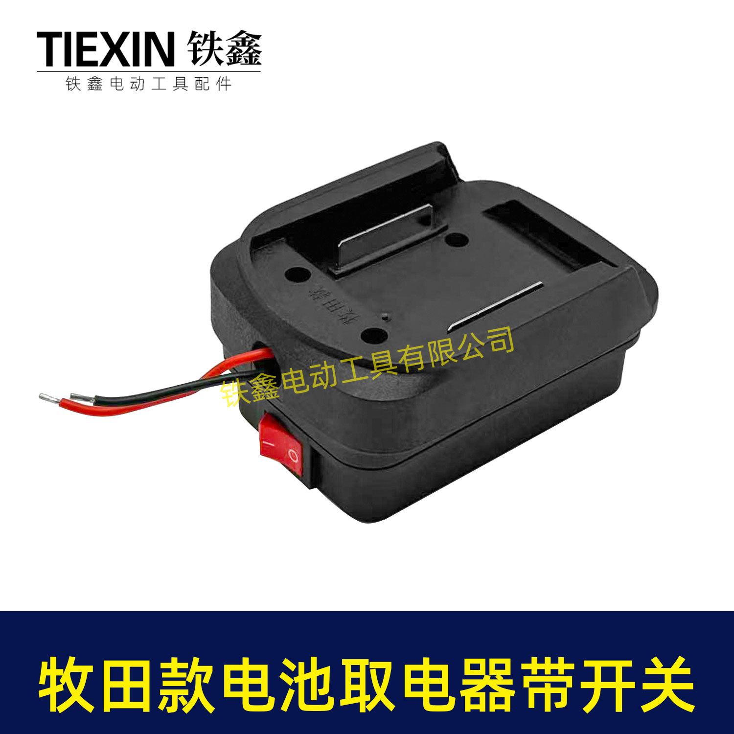 【货号08110】带开关牧田款18V21V24锂电池取电器电池放电口输出两插脚带线适配器转换器