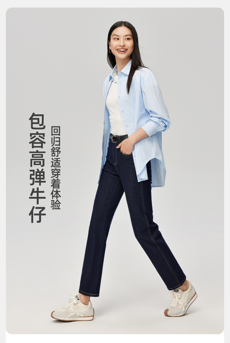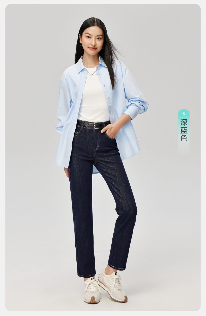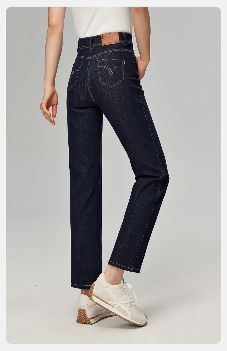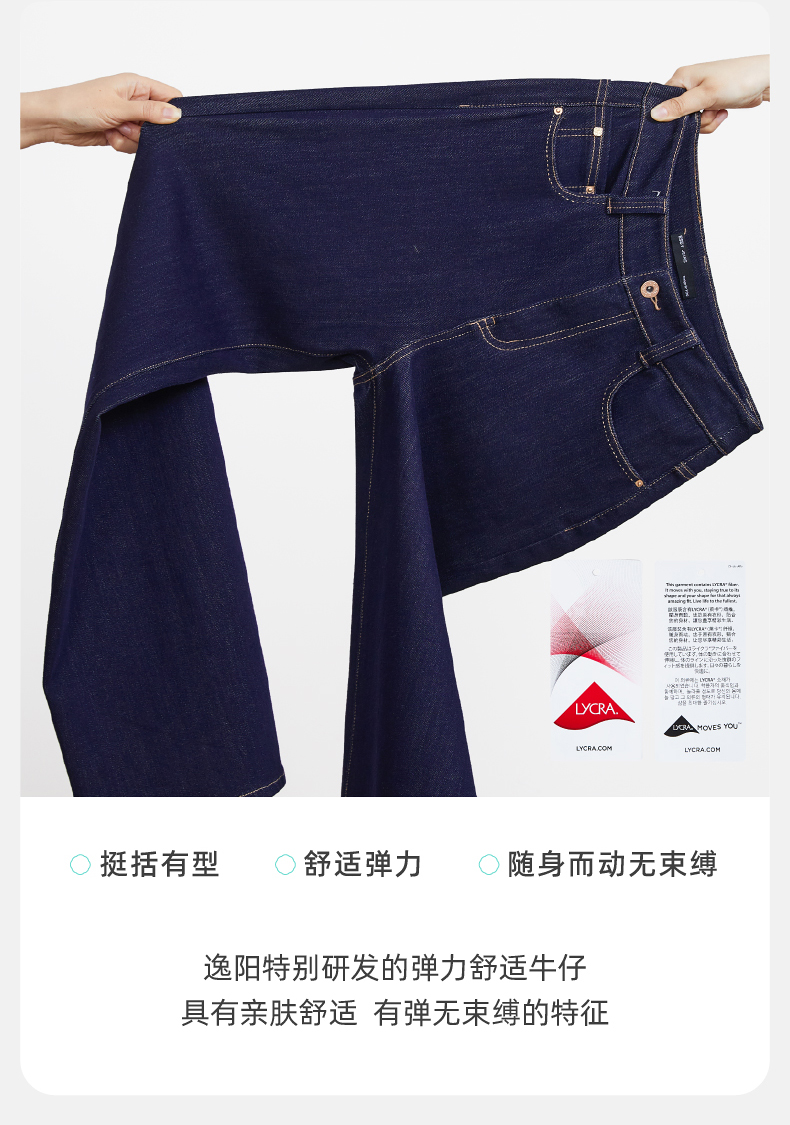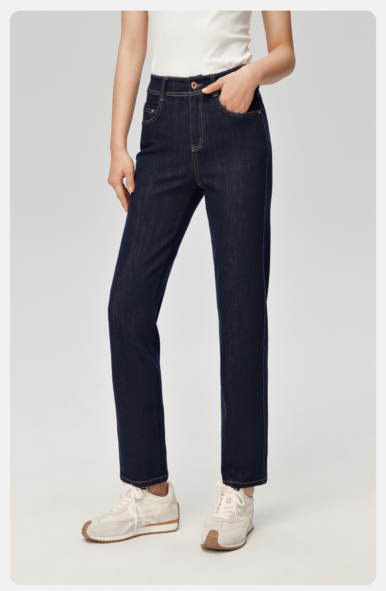 【笔杆-九分-直筒裤】逸阳春新品高弹显瘦深蓝色直筒牛仔小个子烟管裤5589
