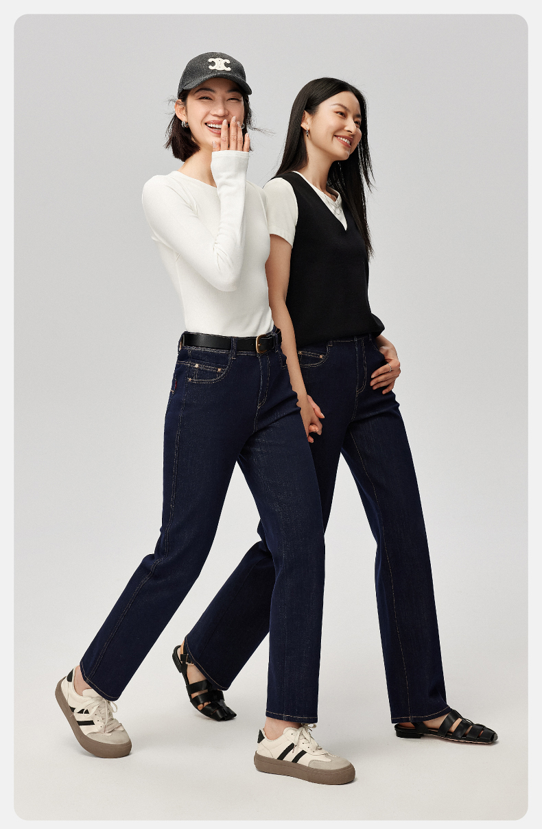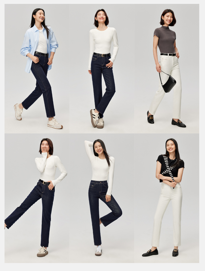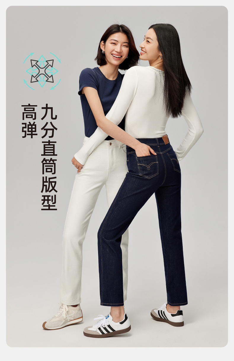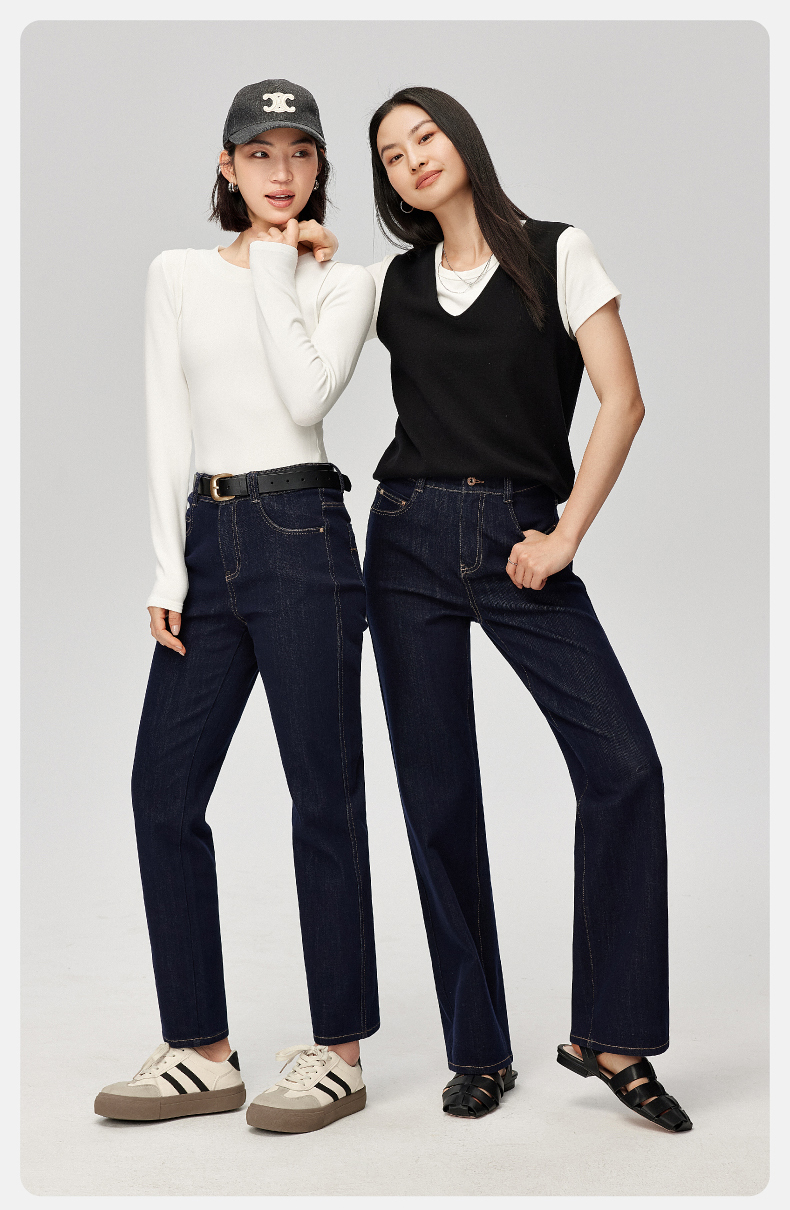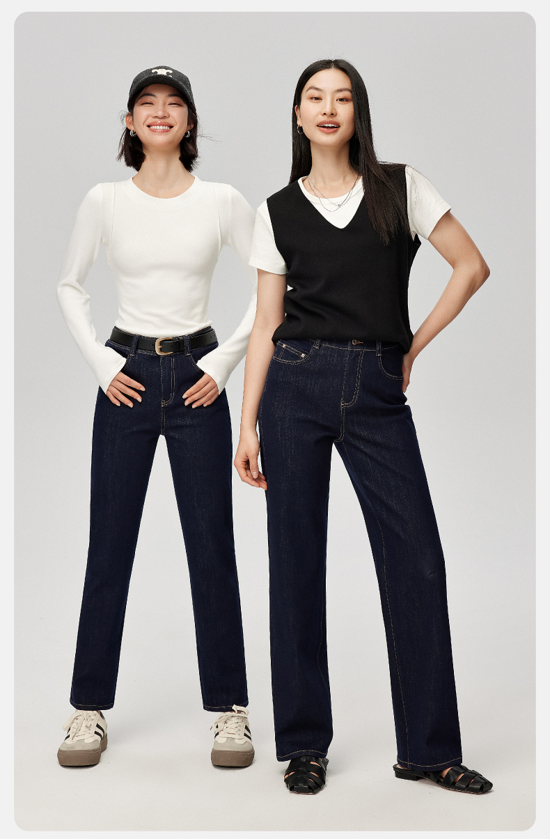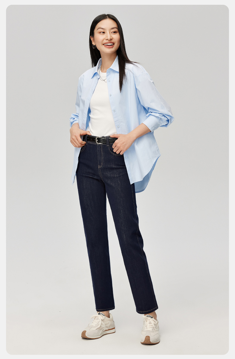 【笔杆-九分-直筒裤】逸阳春新品高弹显瘦深蓝色直筒牛仔小个子烟管裤5589