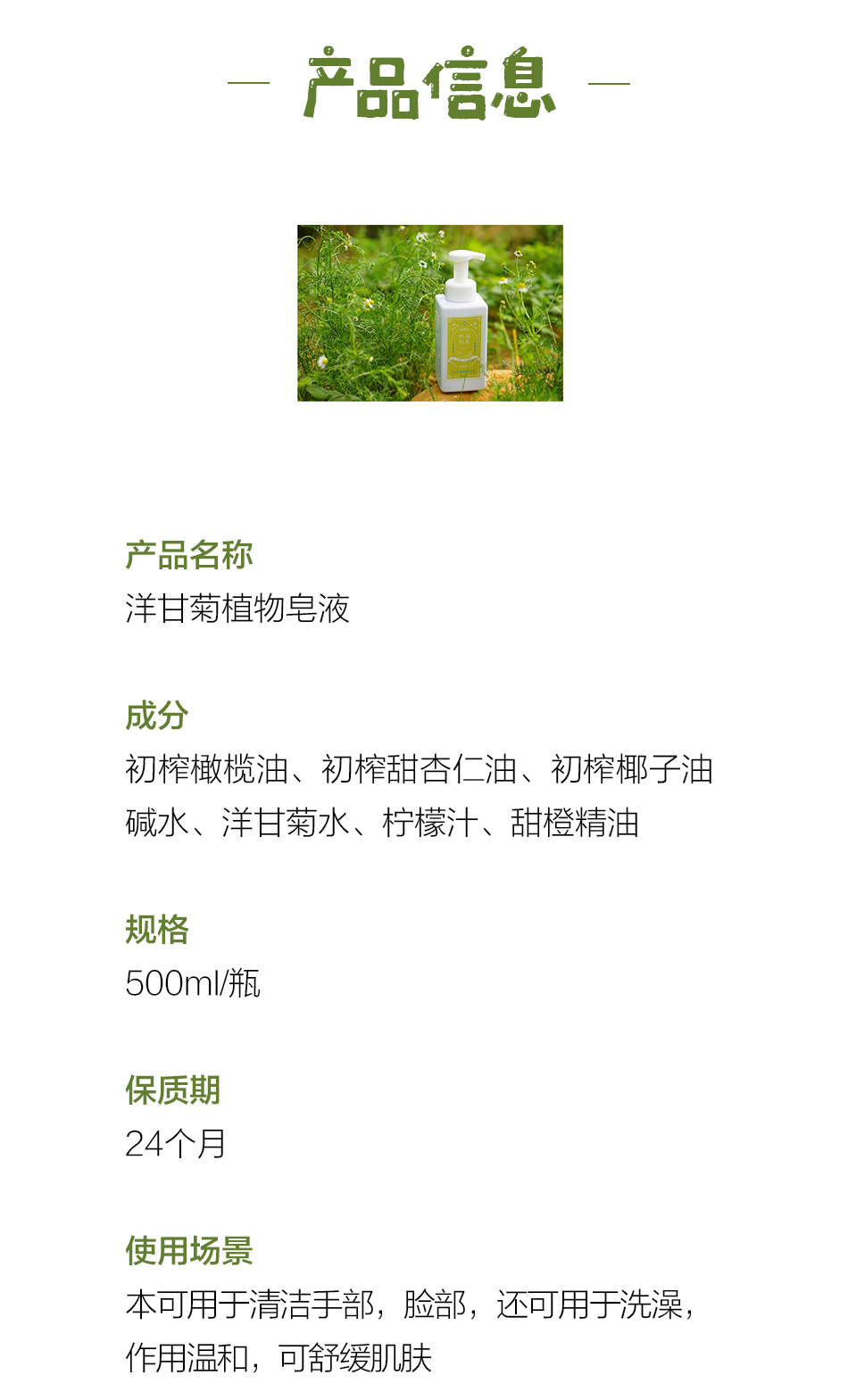 洋甘菊植物皂液/沐浴露(成都仓库-顺丰发货)|500ml/瓶,来自广东中山,生产者:旗溪【合作生产,公平贸易 】