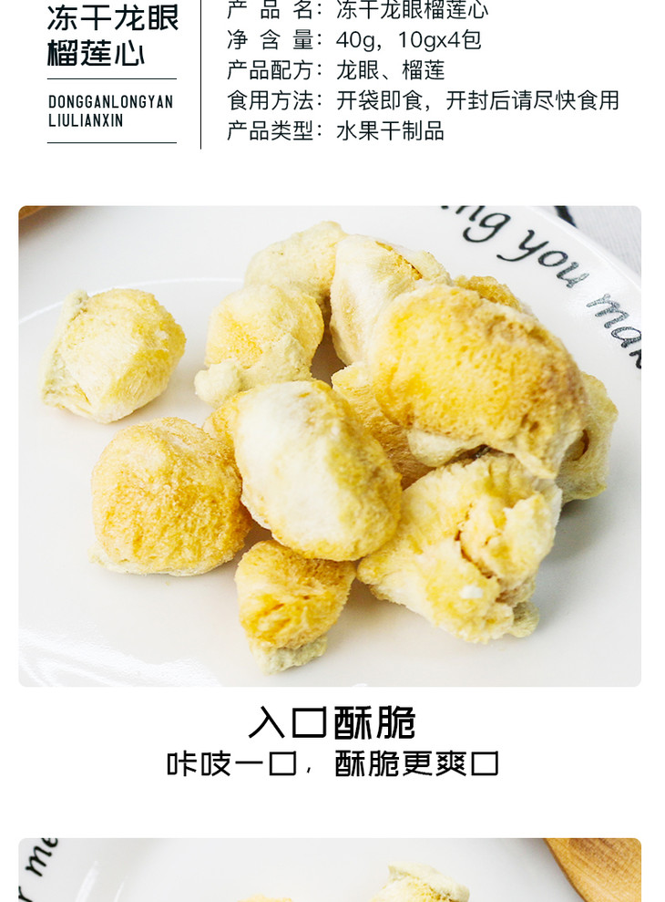 冻干龙眼榴莲心10克*4包 严选泰国进口榴莲及龙眼,真空冷冻工艺