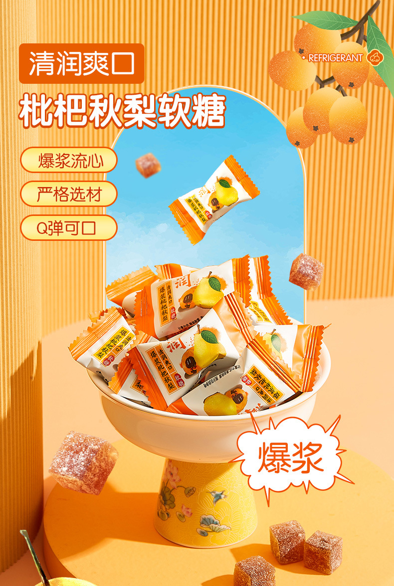 【你我的咽喉好伴侣!甘草枇杷软糖】枇杷搭配甘草好滋味,选自新鲜好枇杷,口感微微冰爽清凉 甜而不腻,果香清新 悦享缤纷,独立包装 干净卫生,爆浆慈梨膏枇杷秋梨甘草薄荷清凉润网红喜糖追剧零食零食休闲小吃