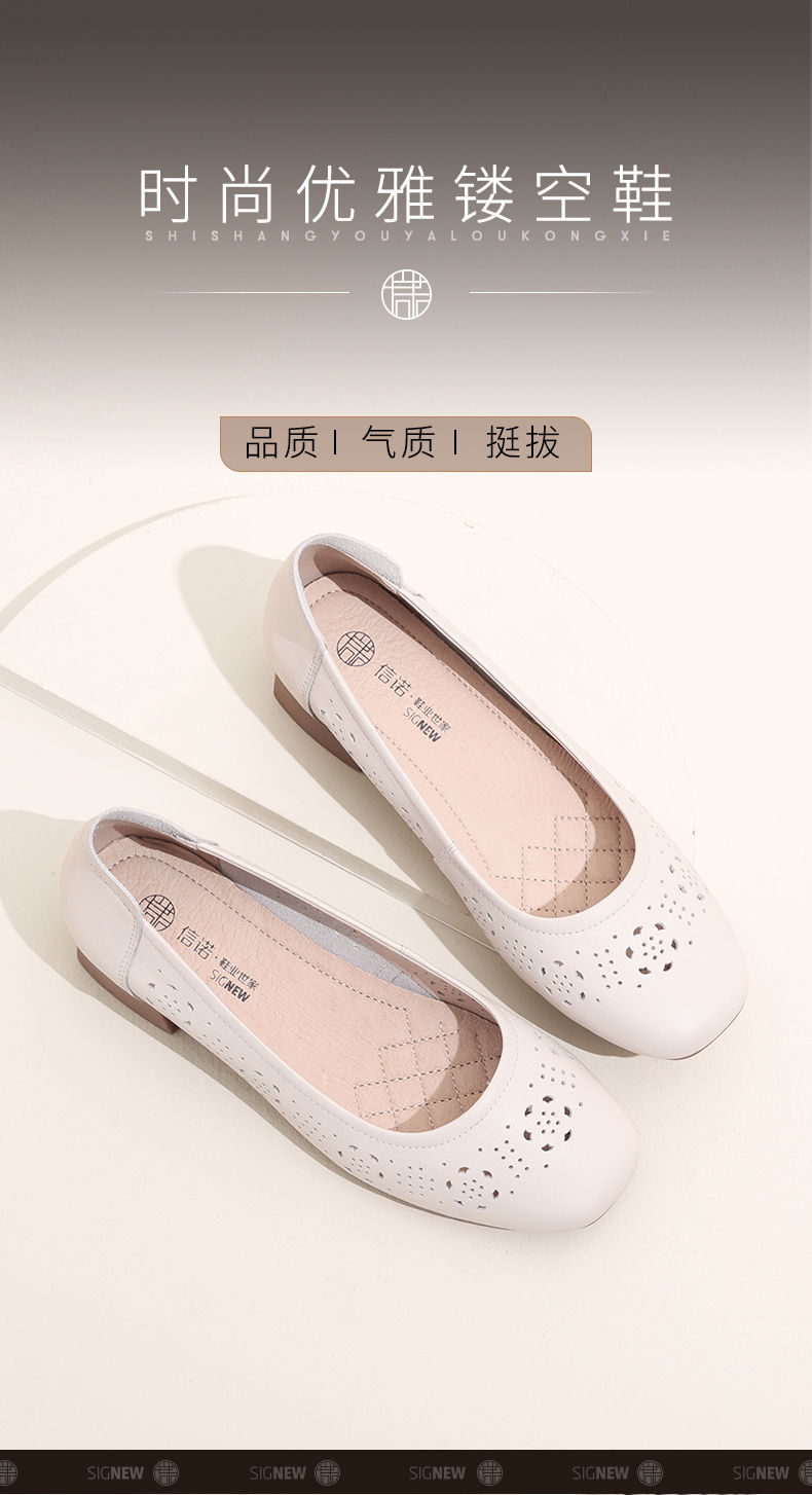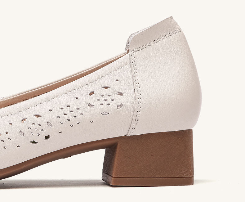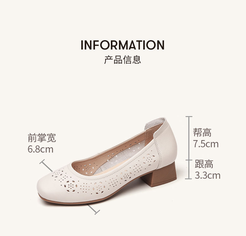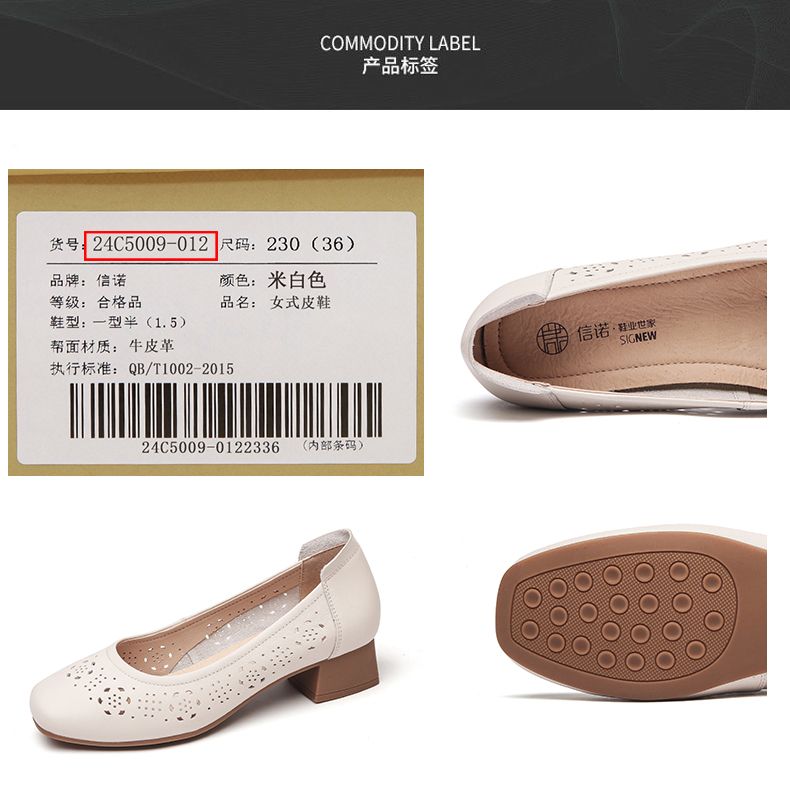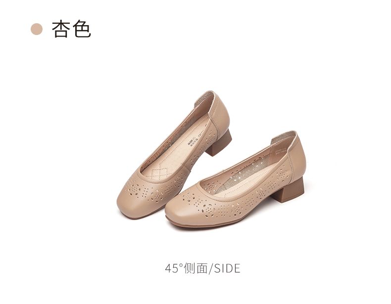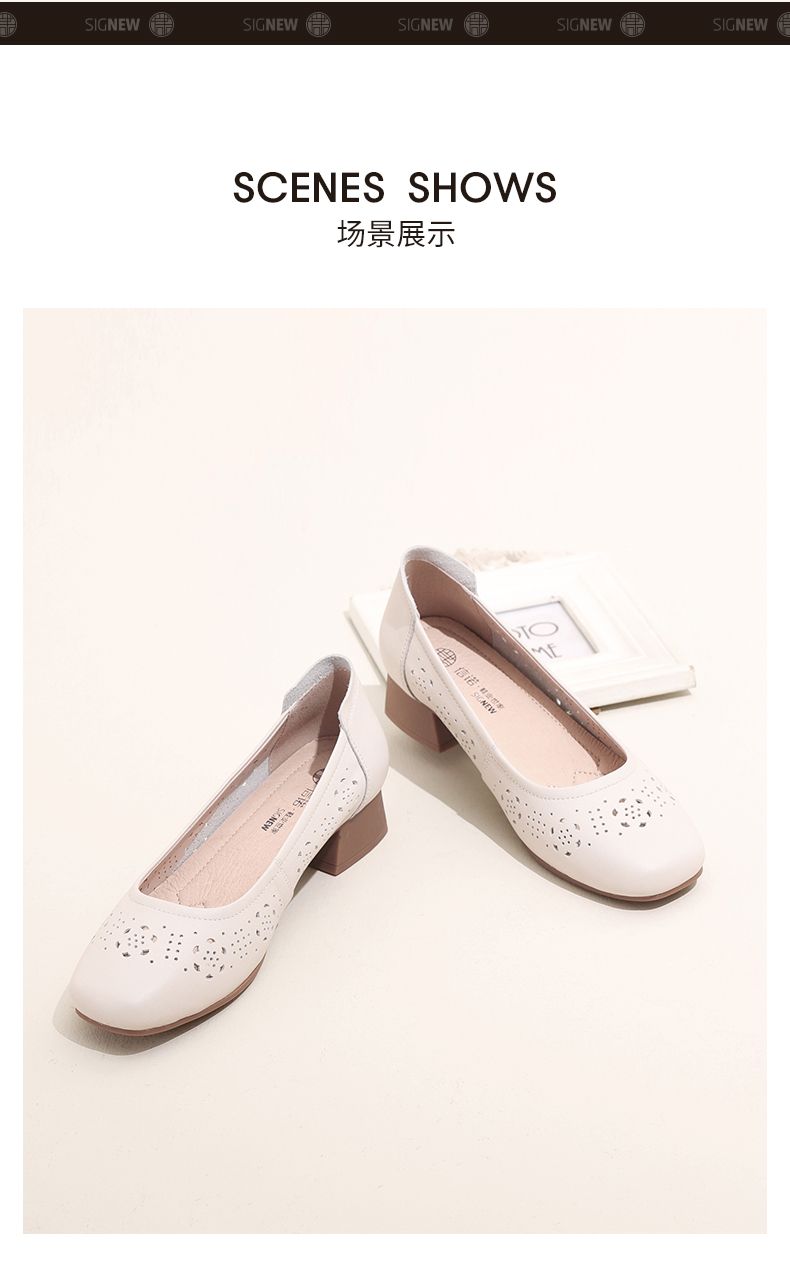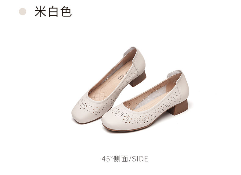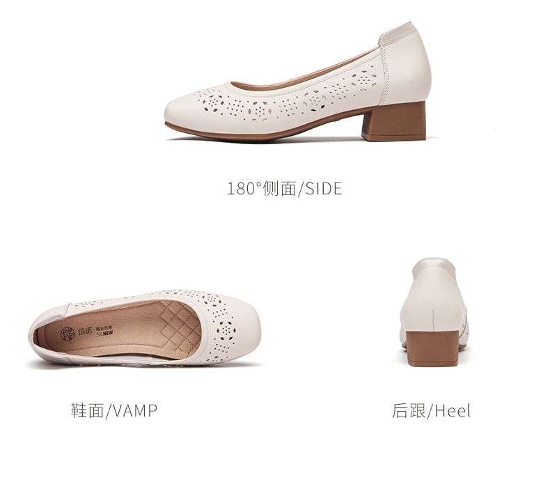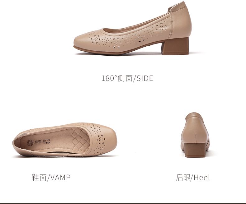 信诺 真皮舒适女鞋 2024新款夏季镂空单鞋粗跟软底中跟妈妈鞋凉鞋24C5009-012