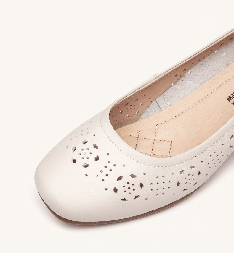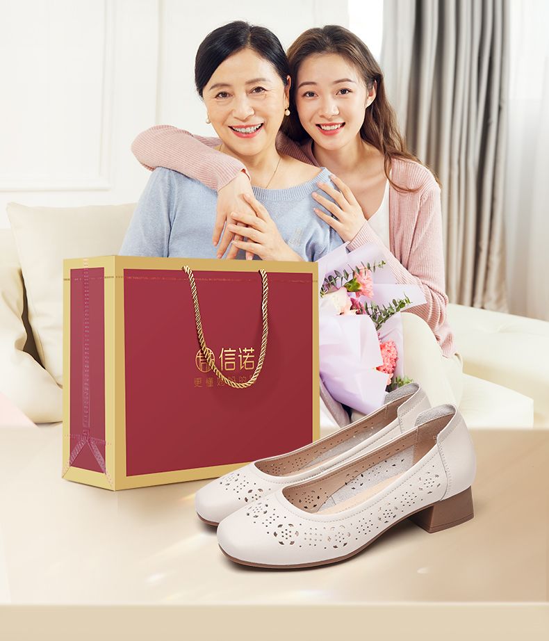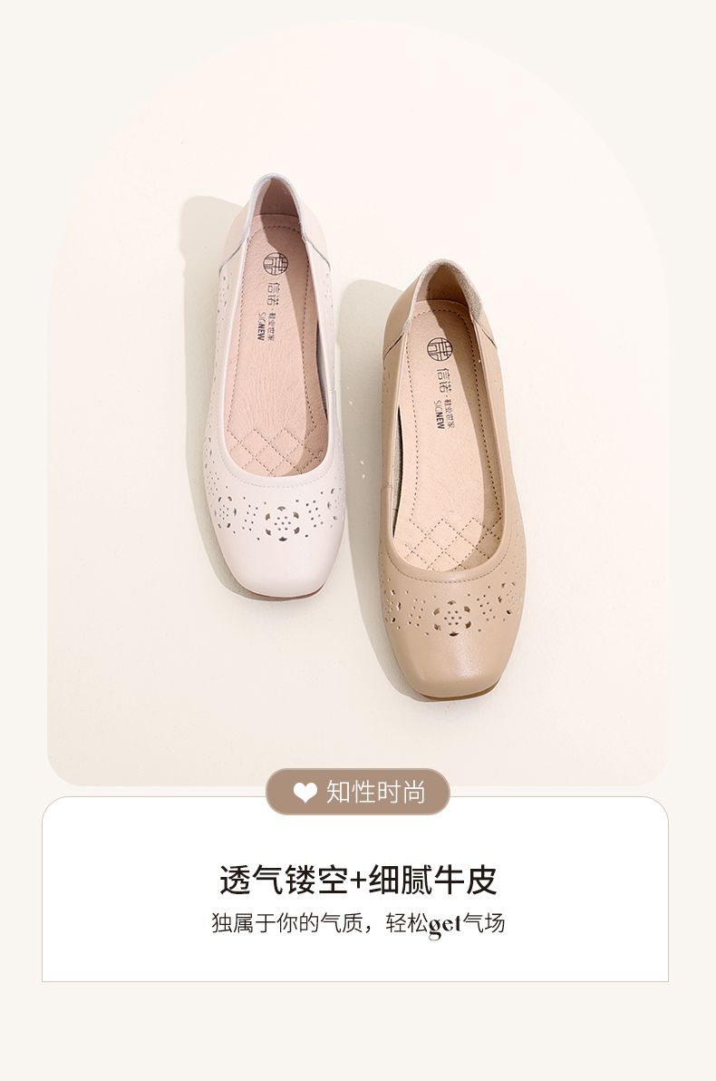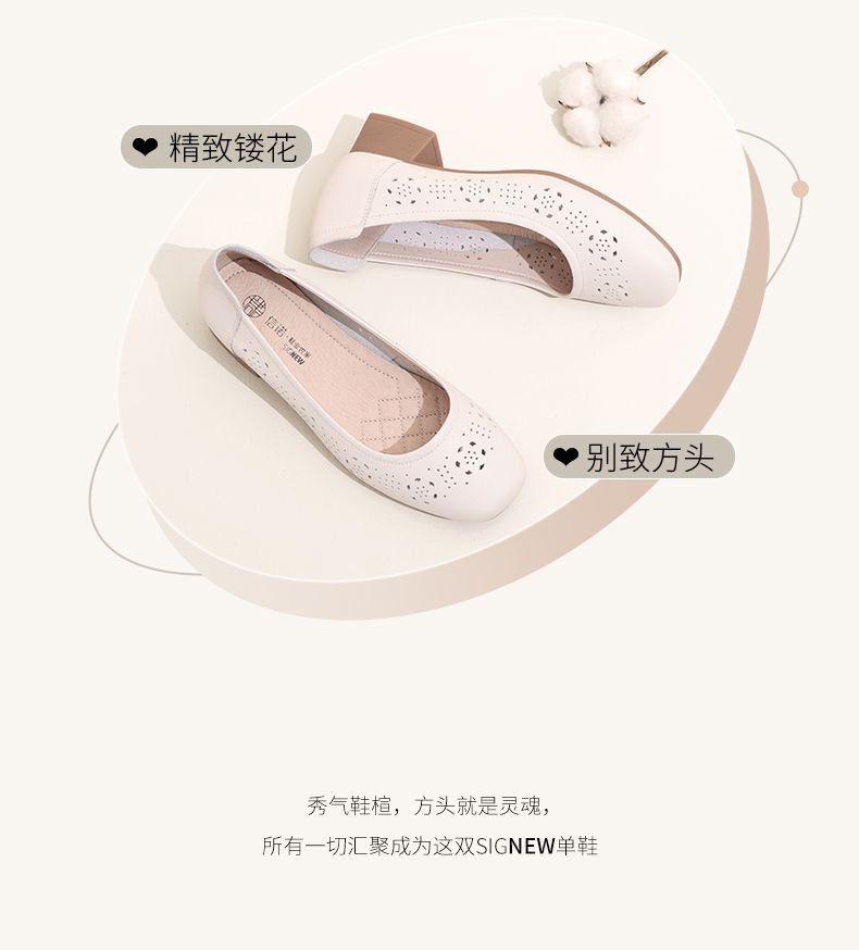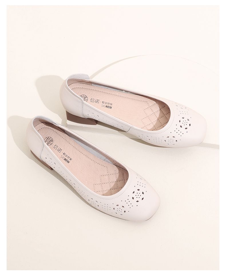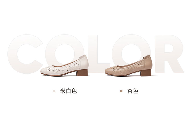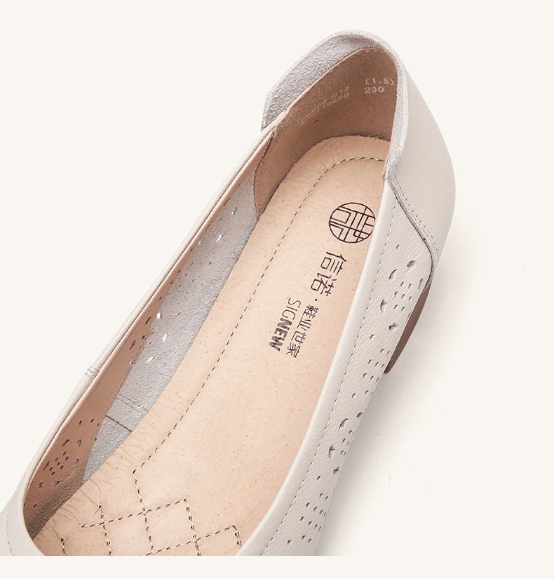 信诺 真皮舒适女鞋 2024新款夏季镂空单鞋粗跟软底中跟妈妈鞋凉鞋24C5009-012