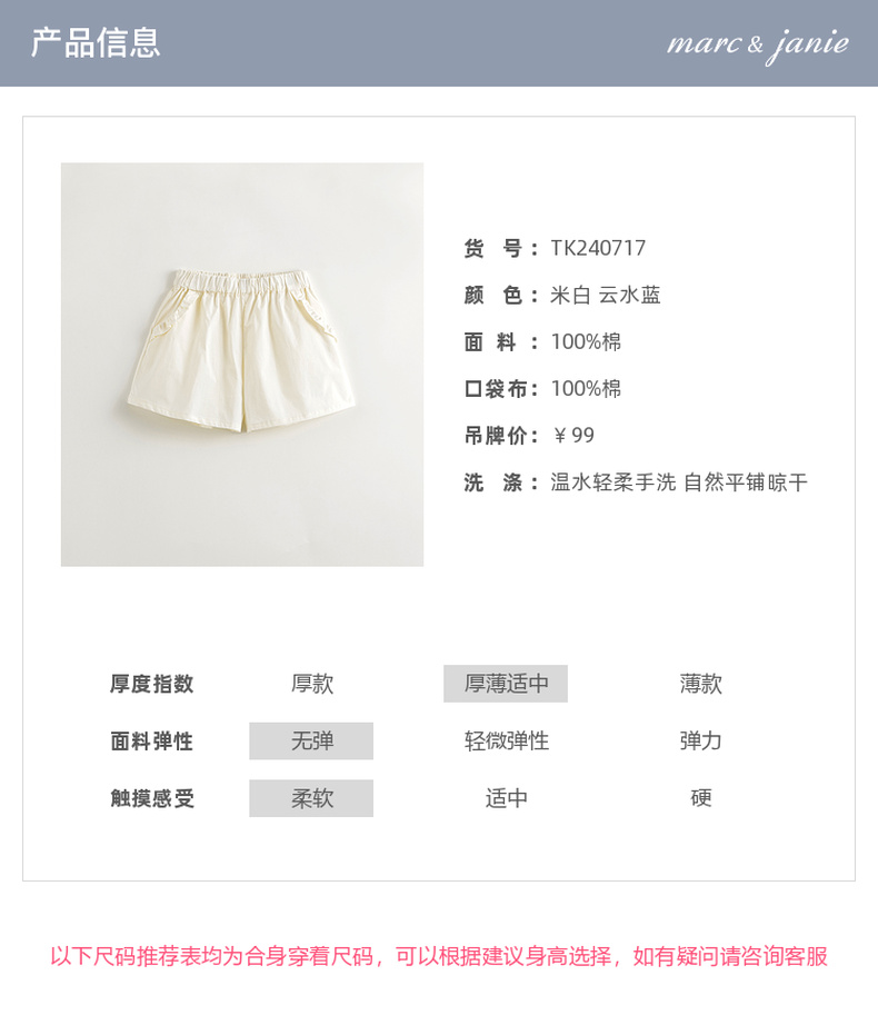 马克珍妮女童花边口袋A字阔腿短裤儿童裤子2024年夏装新款240717