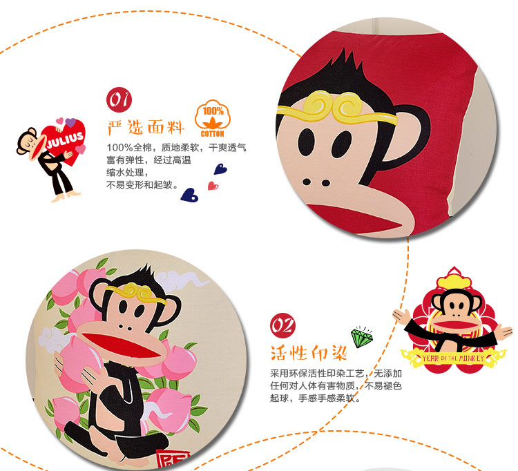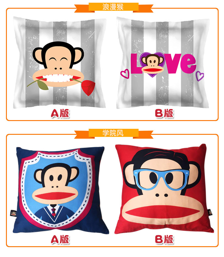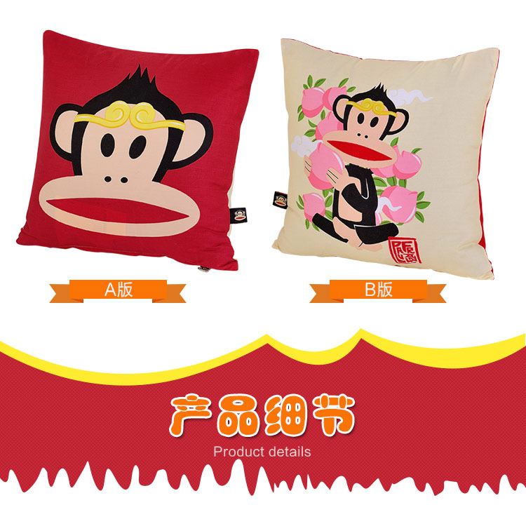 大嘴猴 抱枕可爱靠枕沙发摆件枕头纯棉
