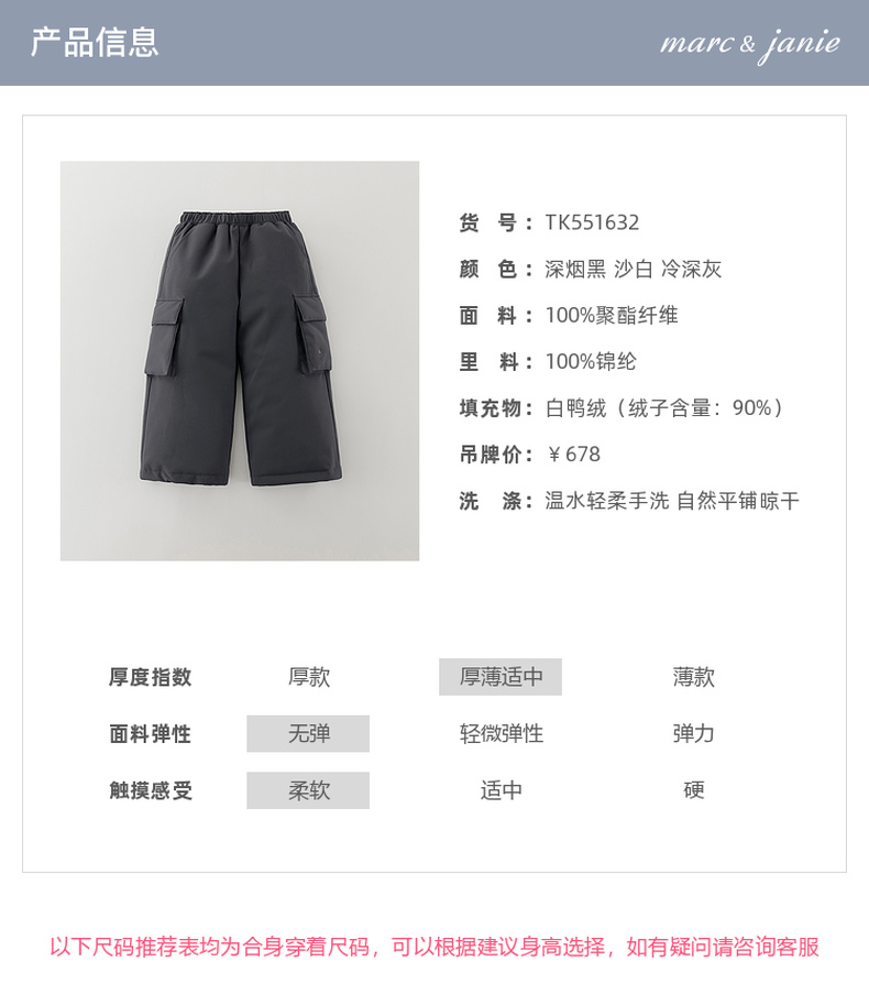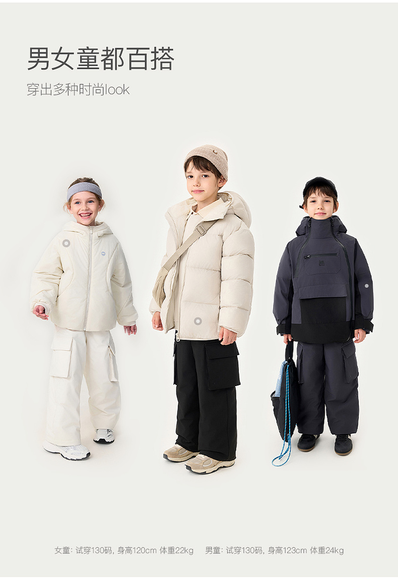 【无氟防泼水】马克珍妮男童防寒防风雪加厚工装羽绒裤2025年冬装新款551632