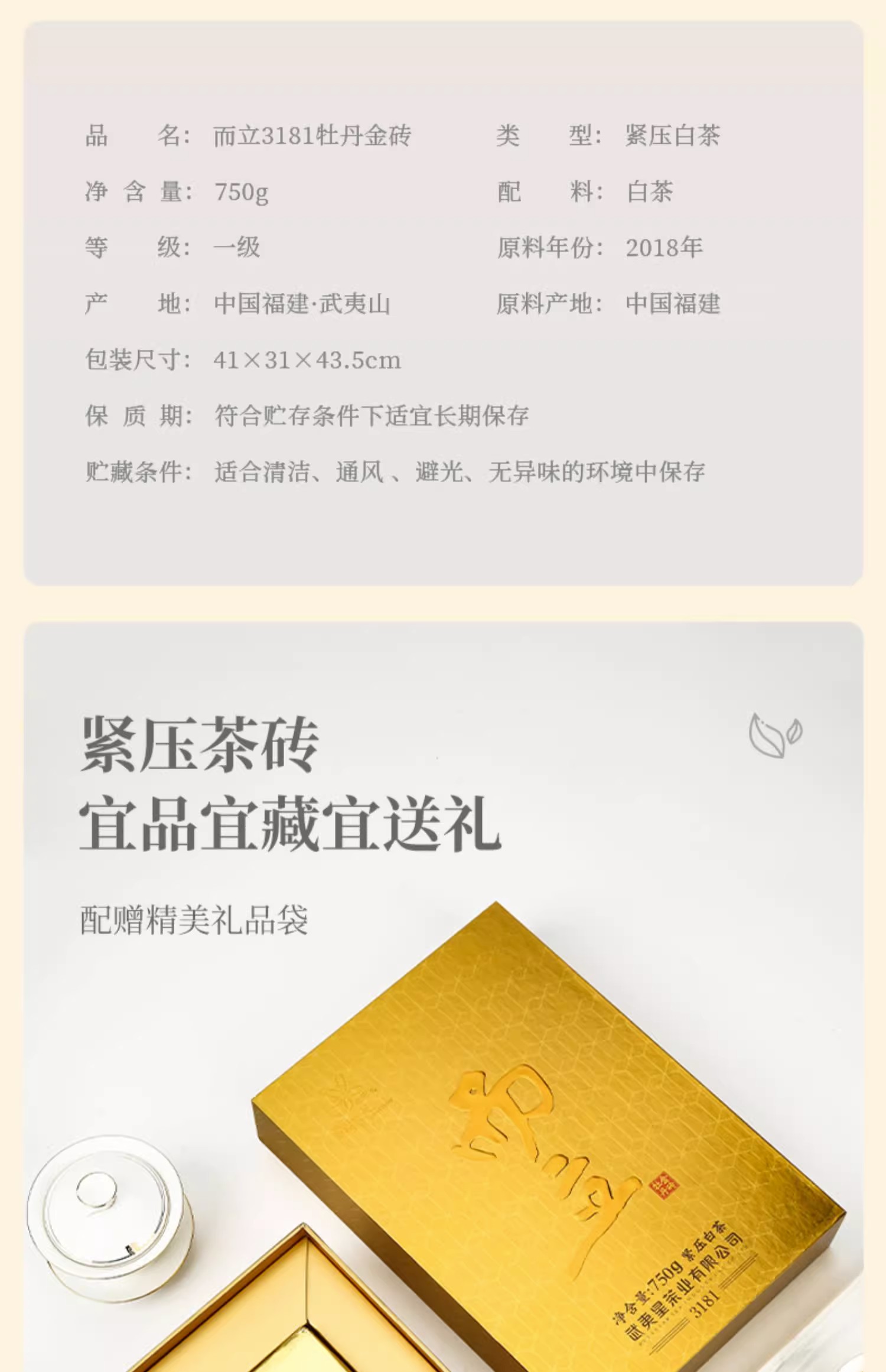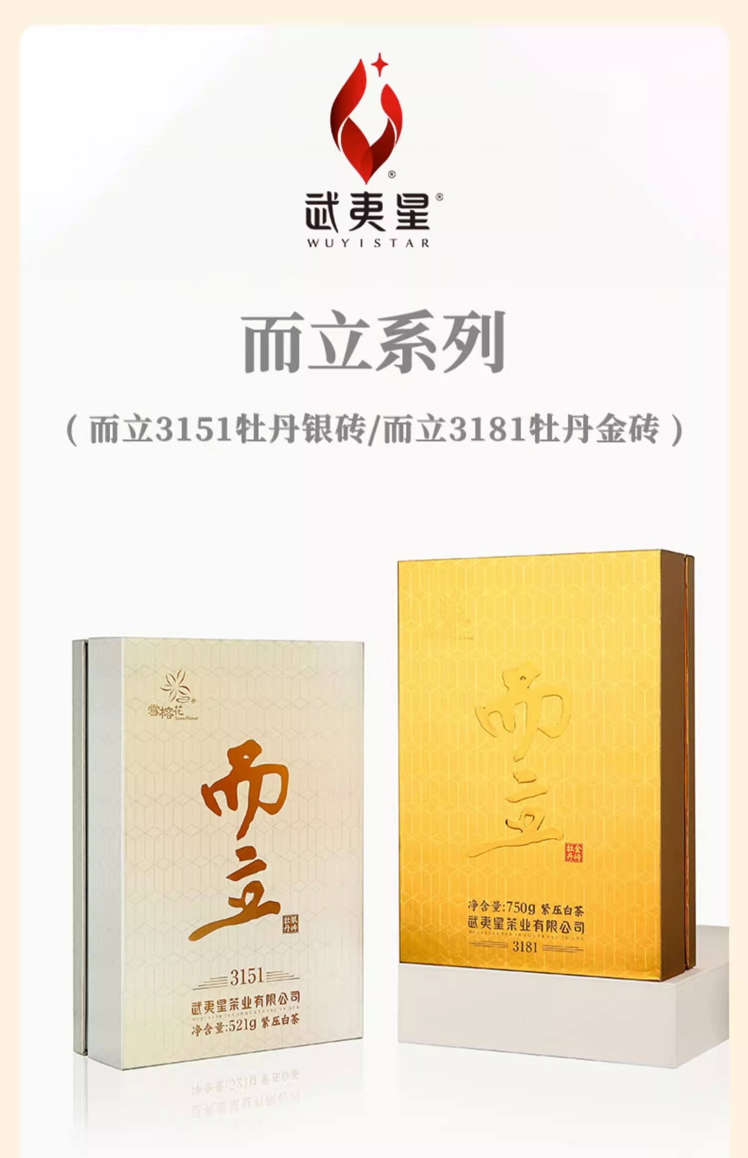 武夷星雪榕花福鼎原料而立3181白牡丹饼礼盒装白茶老白茶