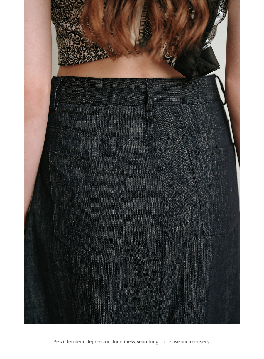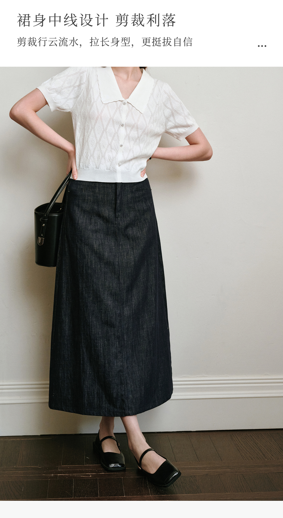 OLrain欧芮儿2025夏季新款时尚气质蓝色高腰显瘦A字半身牛仔裙女