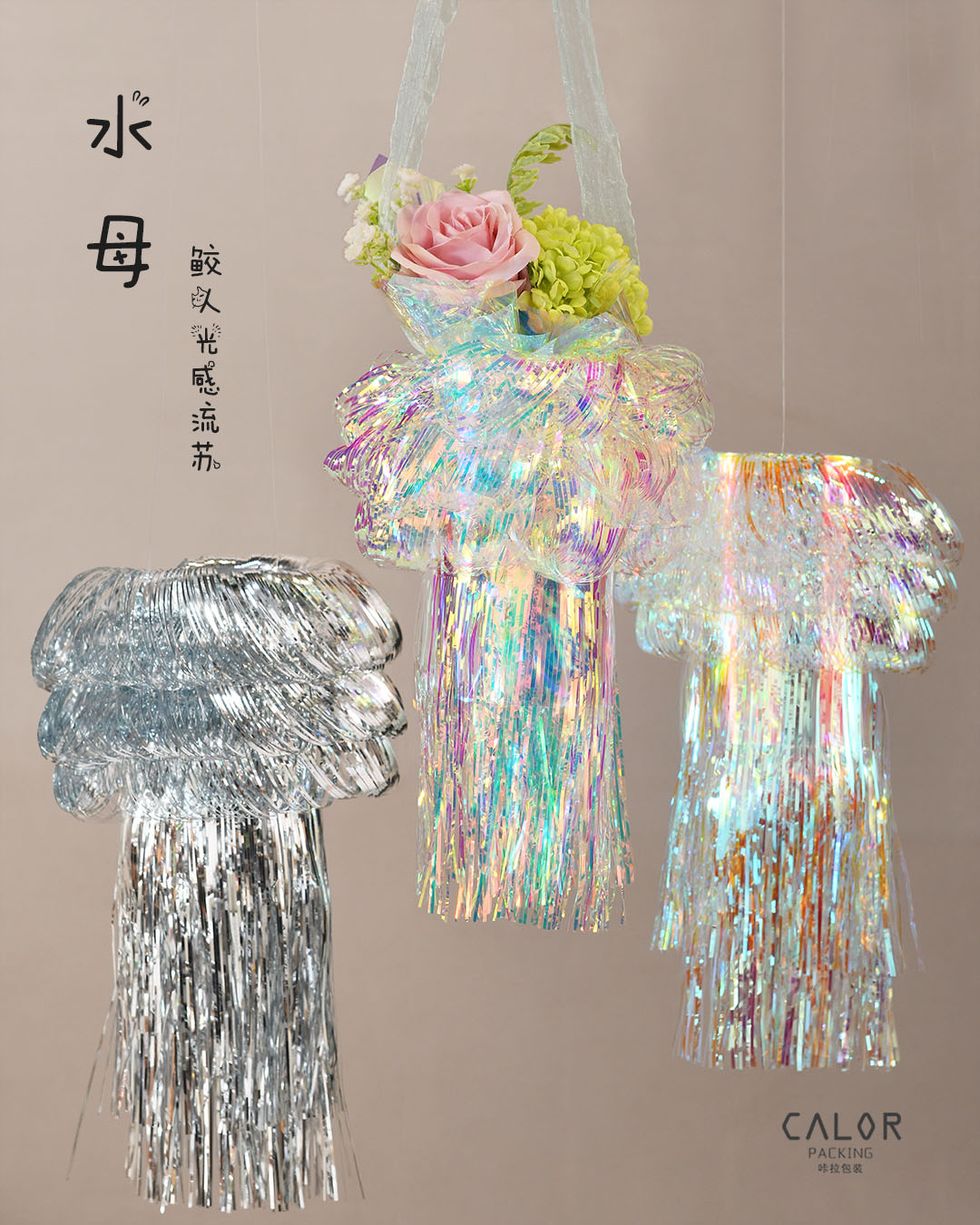 七夕情人节鲜花花束包花纸水母幻彩膜防水