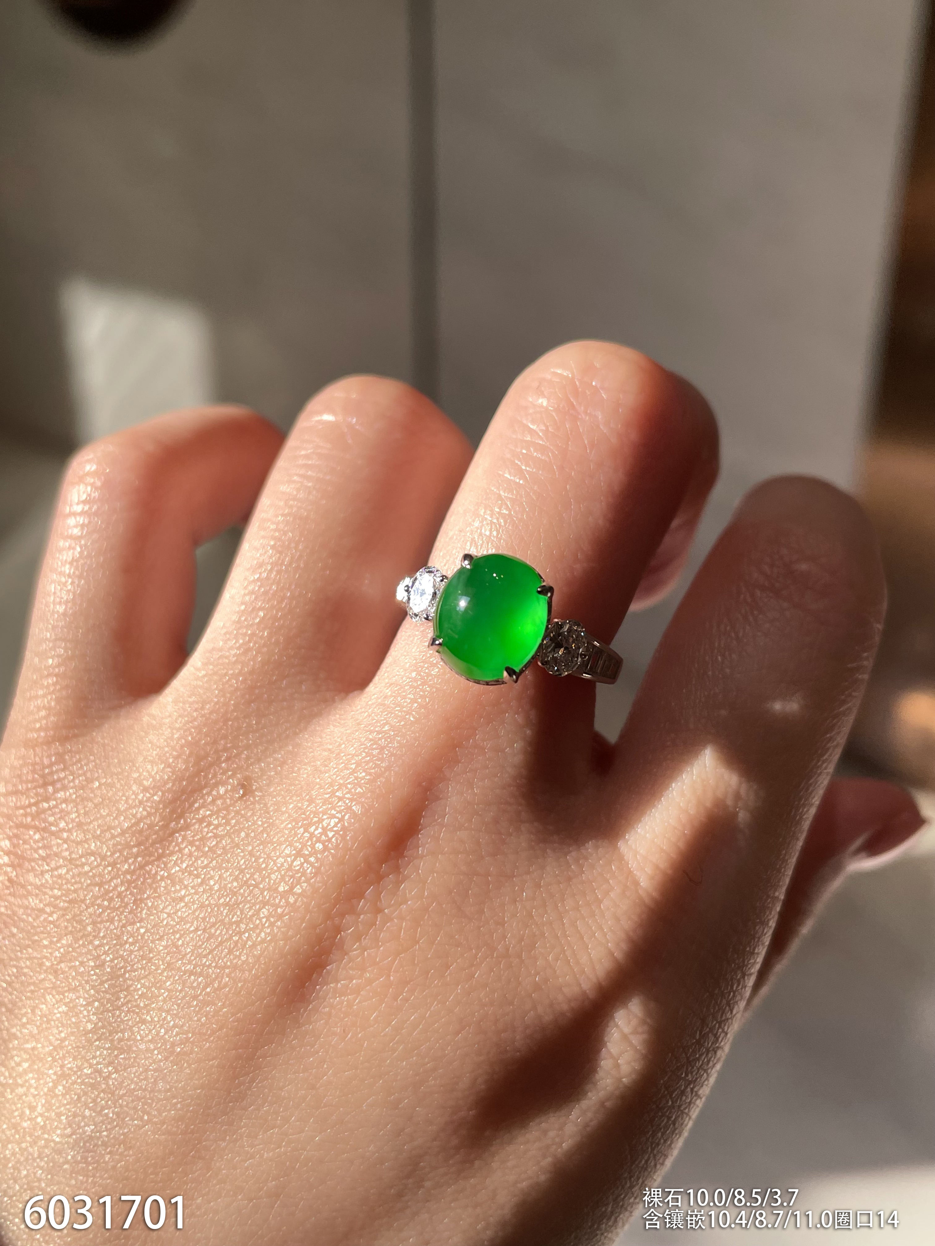 132-2123701,老坑高冰艳绿蛋面戒指,6599
