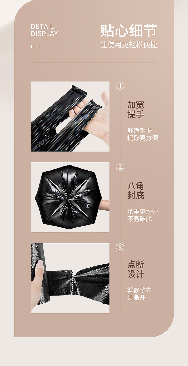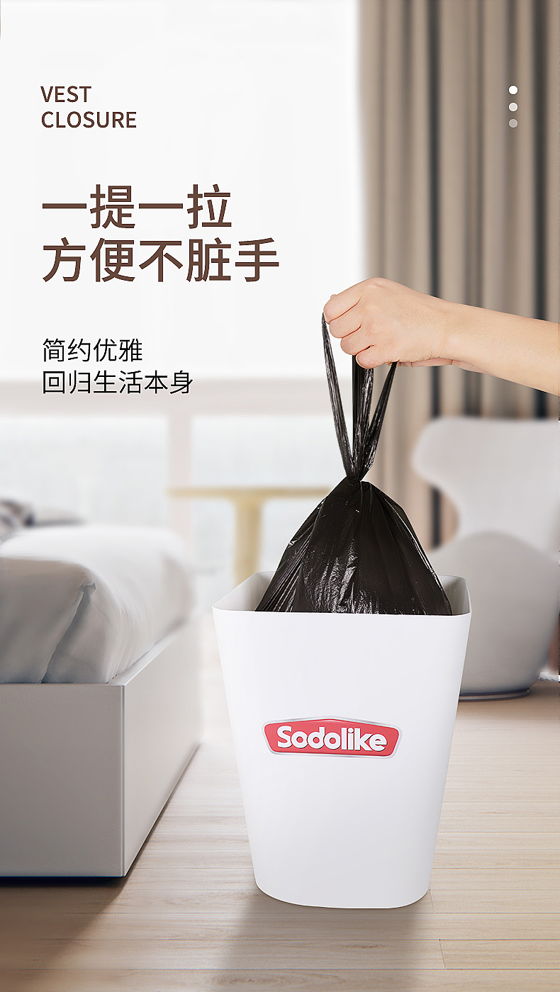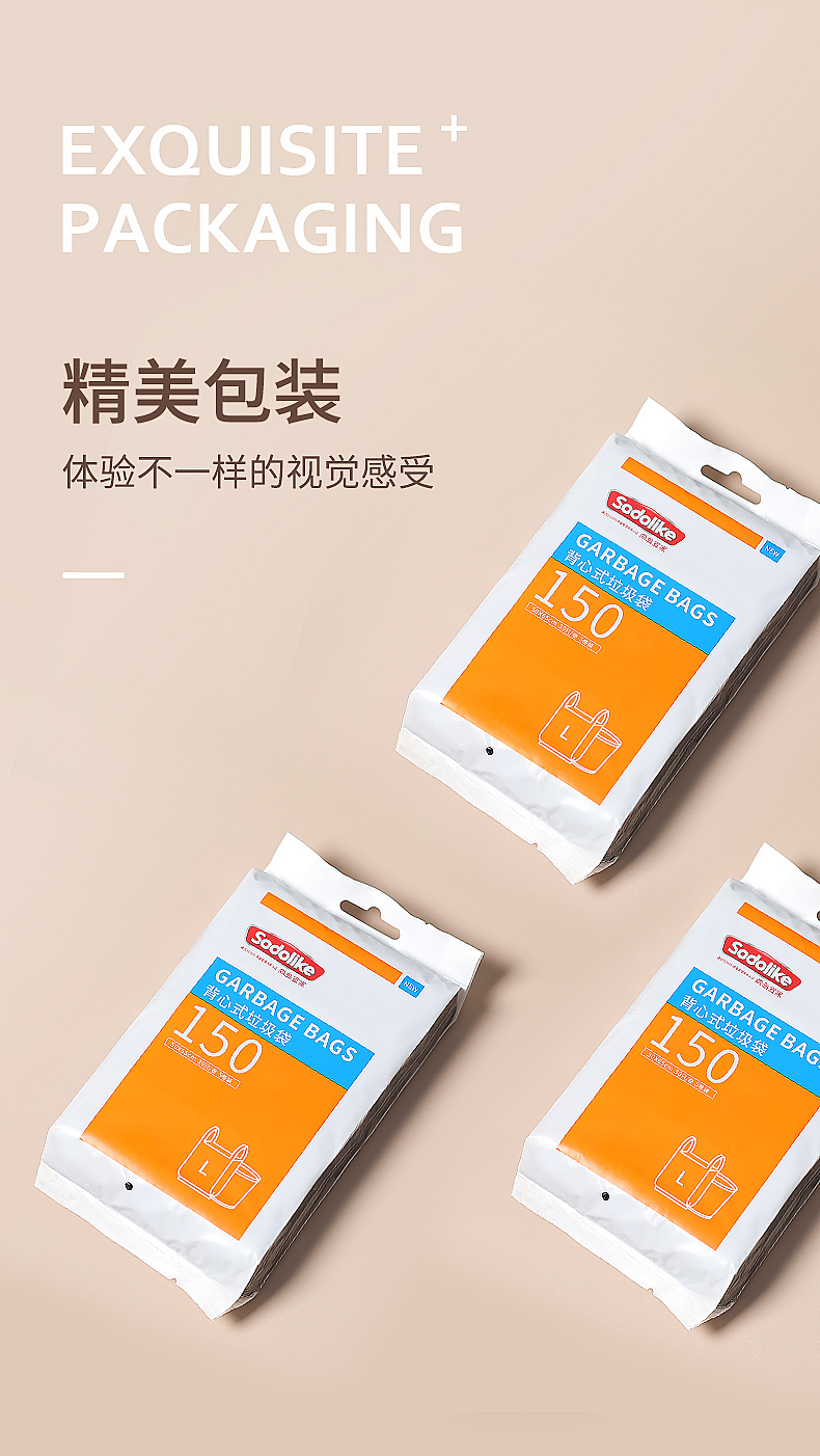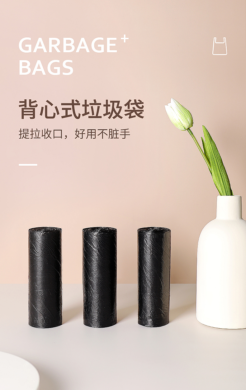 尚岛宜家 背心手提式垃圾袋 150只装 中大号加厚垃圾袋50*65cm*5卷 黑色 家用办公分类垃圾桶袋