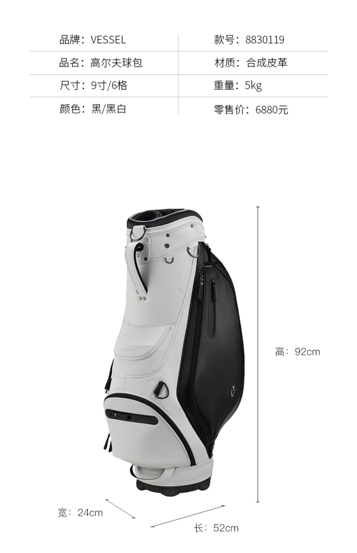 「特价」VESSEL高尔夫球包88301119男士9寸标准职业球袋纤轻便