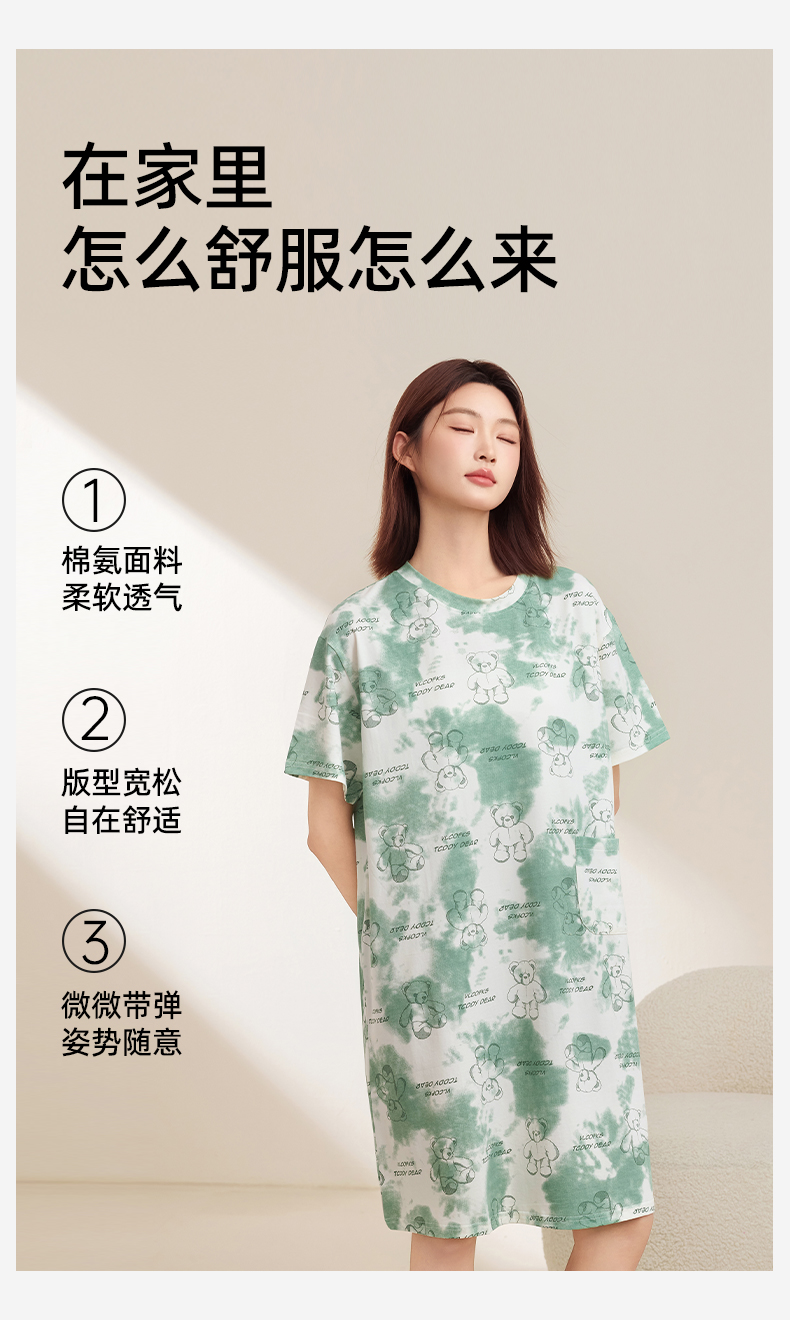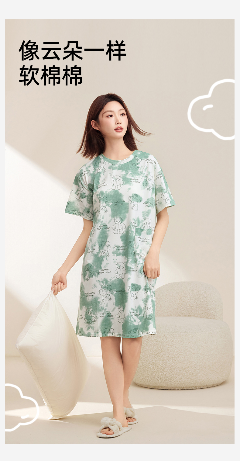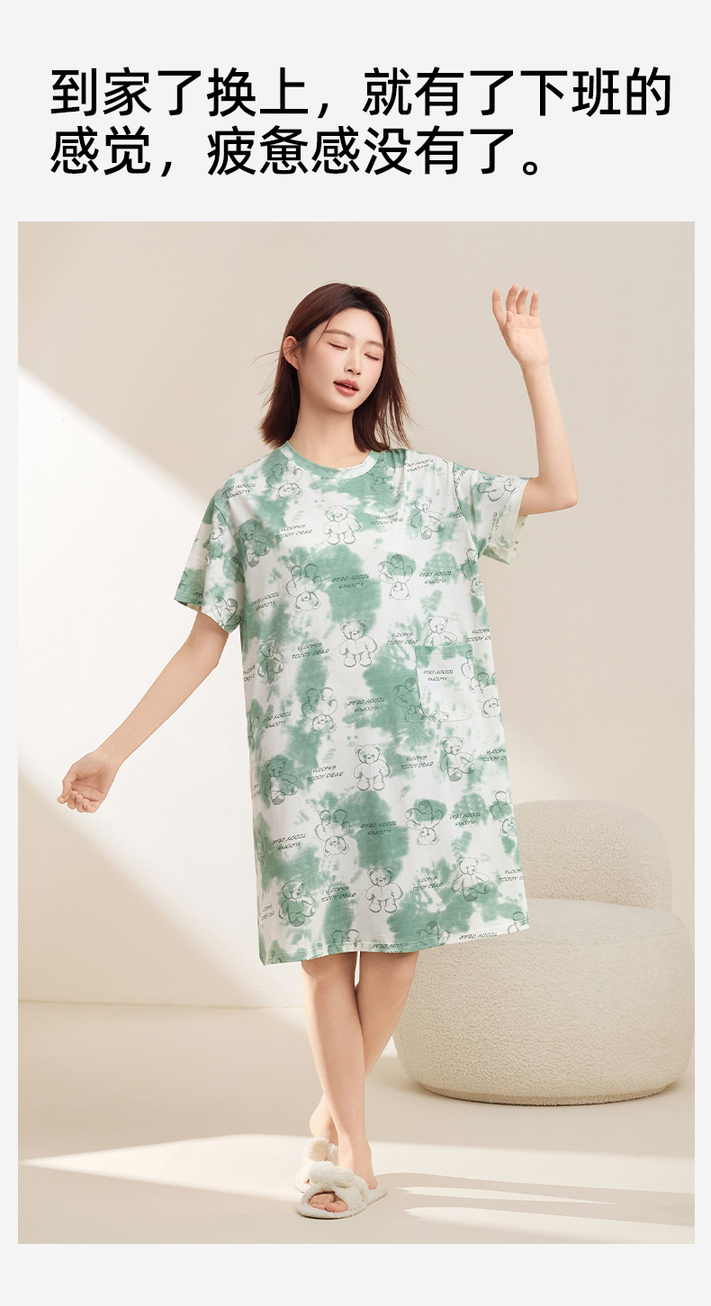 熳洁儿 95棉睡裙扎染柔软女士家居服休闲可外穿带口袋24253213