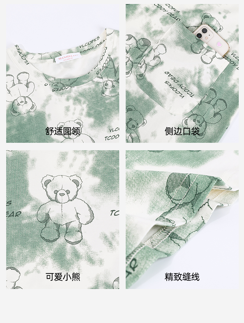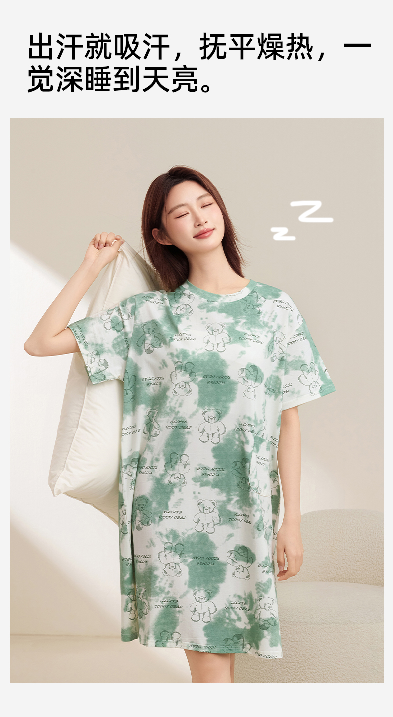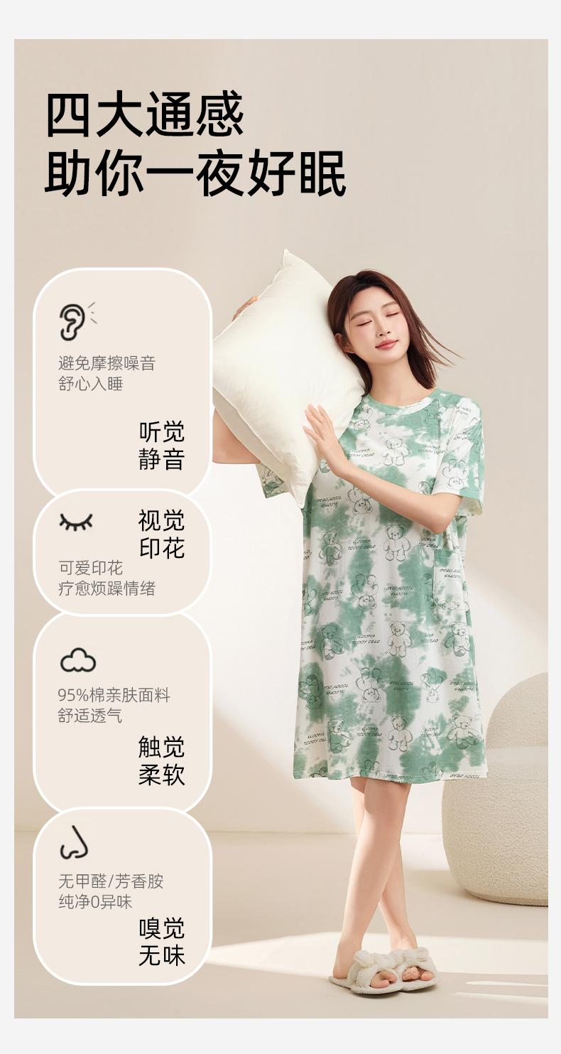 熳洁儿 95棉睡裙扎染柔软女士家居服休闲可外穿带口袋24253213