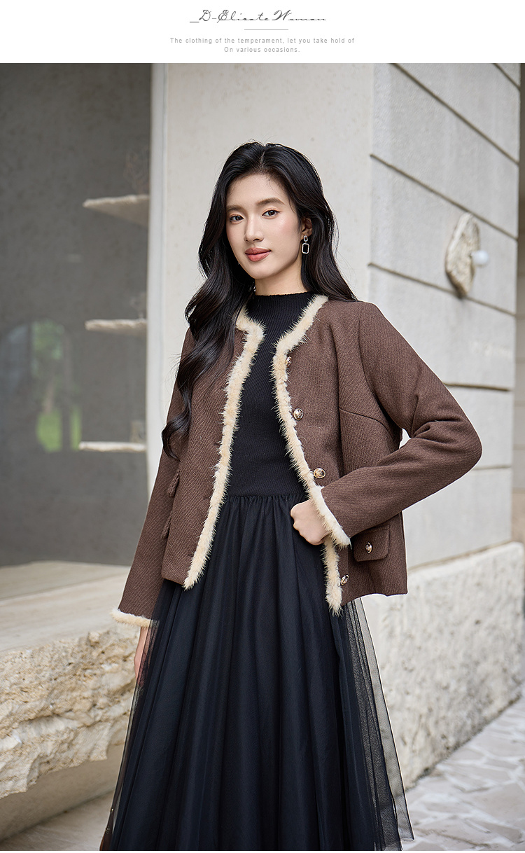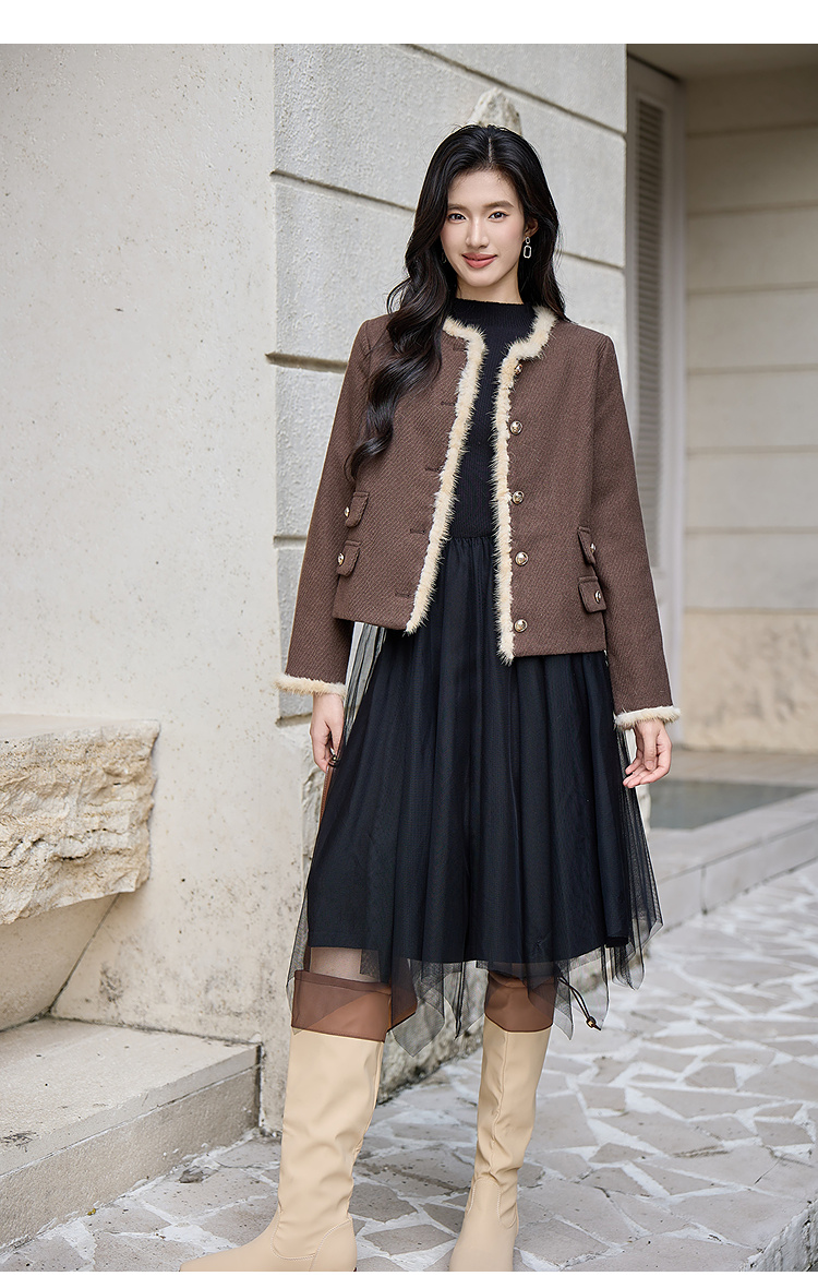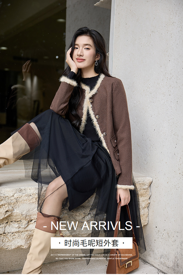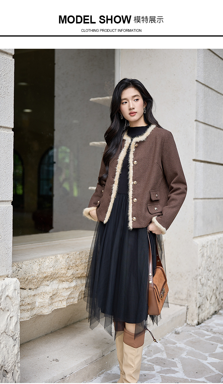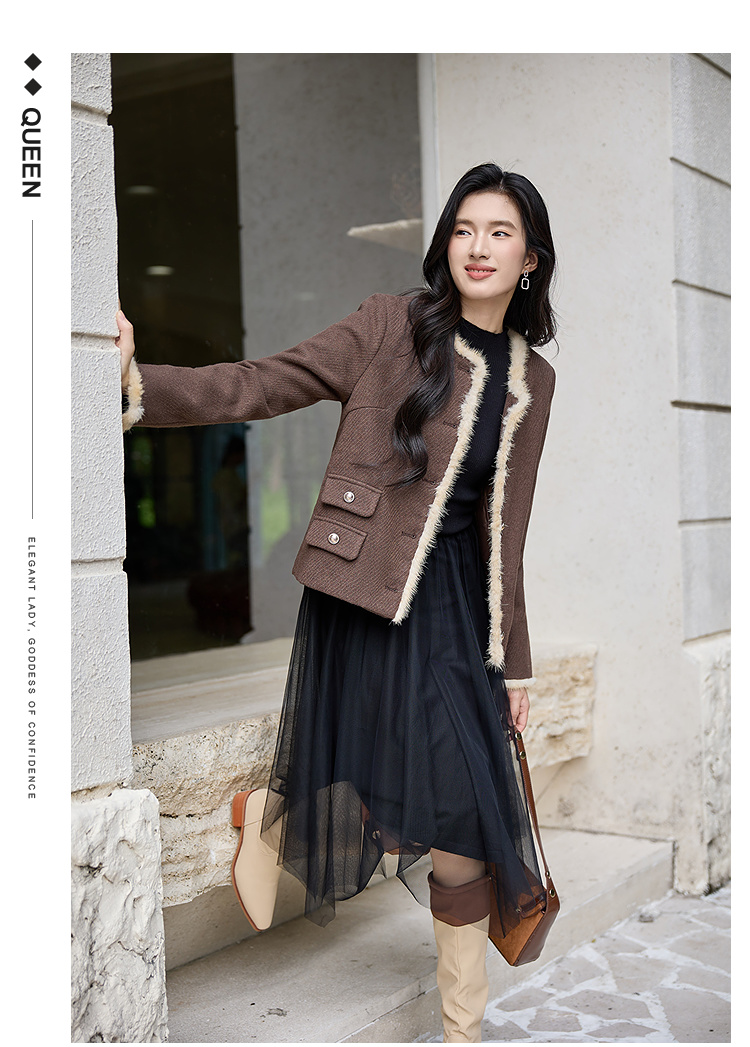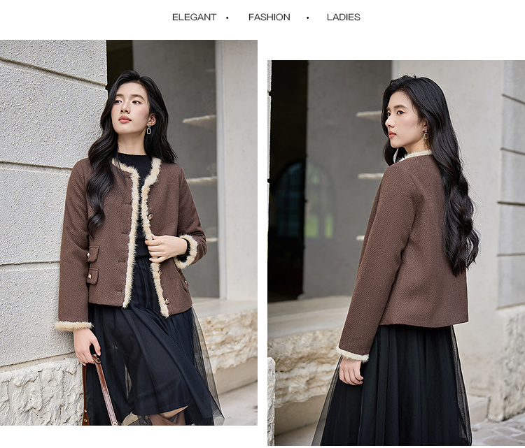 奢姿大码女装2025冬季减龄毛边假口袋设计时尚气质名媛毛呢短外套9954370381