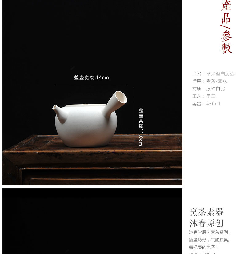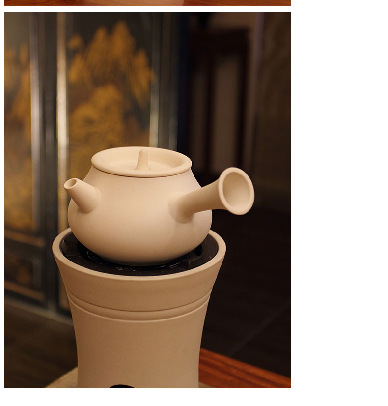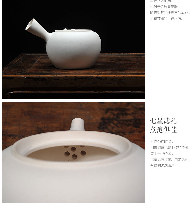 莺歌烧陶壶日式白泥急须侧把烧水壶 办公烧水煮茶壶 急须形侧把白泥壶 粗陶壶煮茶器